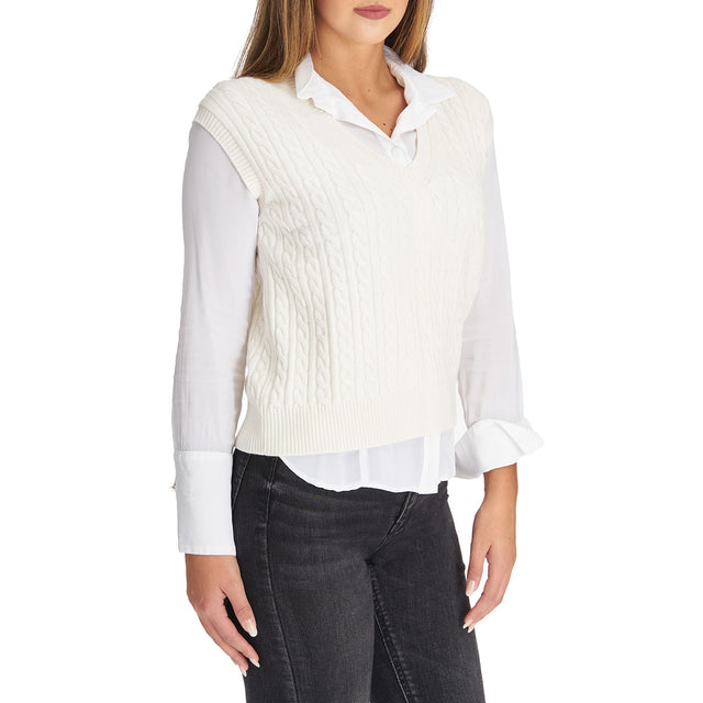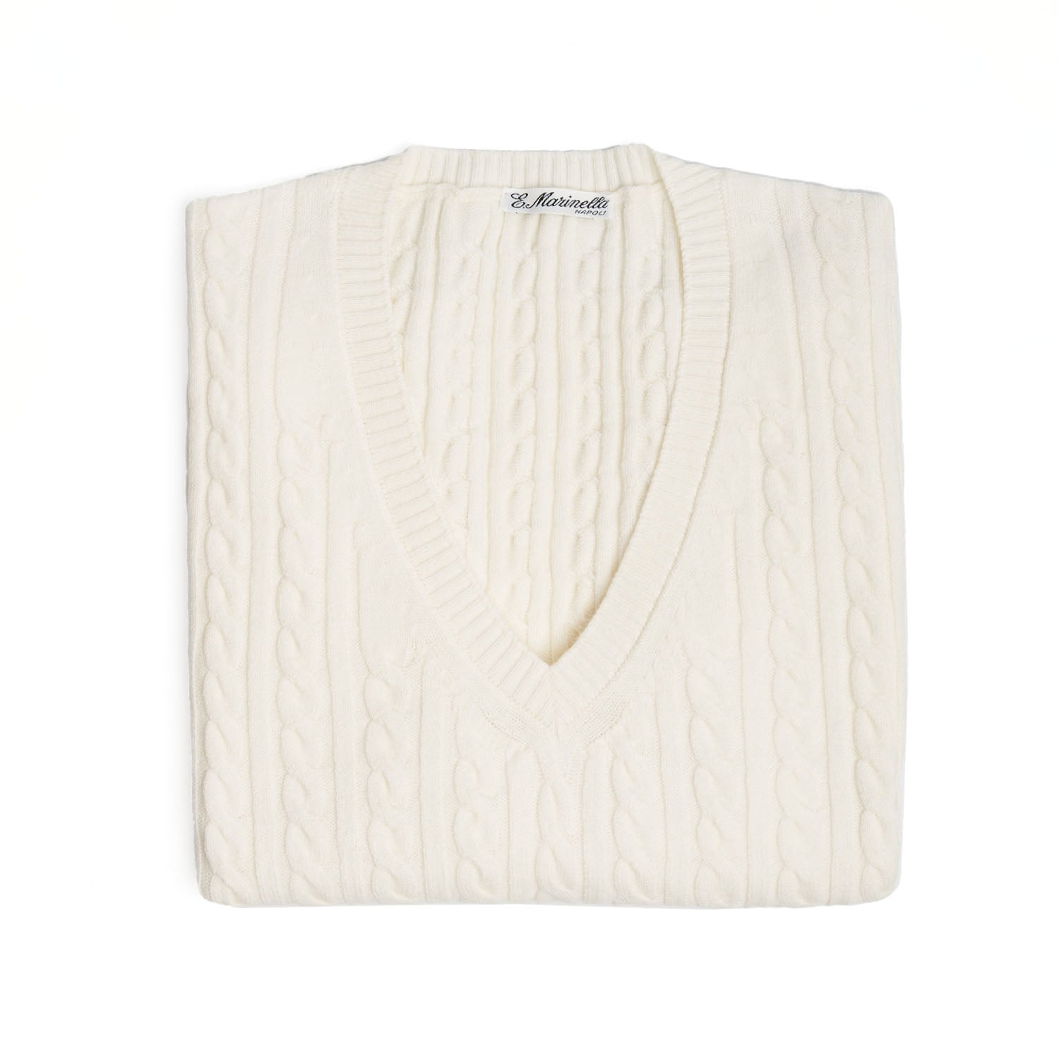 PULLOVER SMANICATO CON TRECCE BIANCO IN LANA