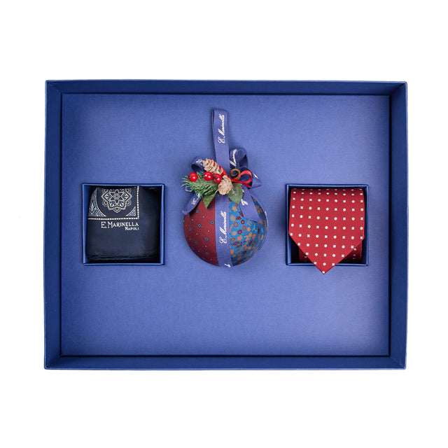 BOX DI NATALE CON CRAVATTA BORDEAUX E POCHETTE BLU SCURO
