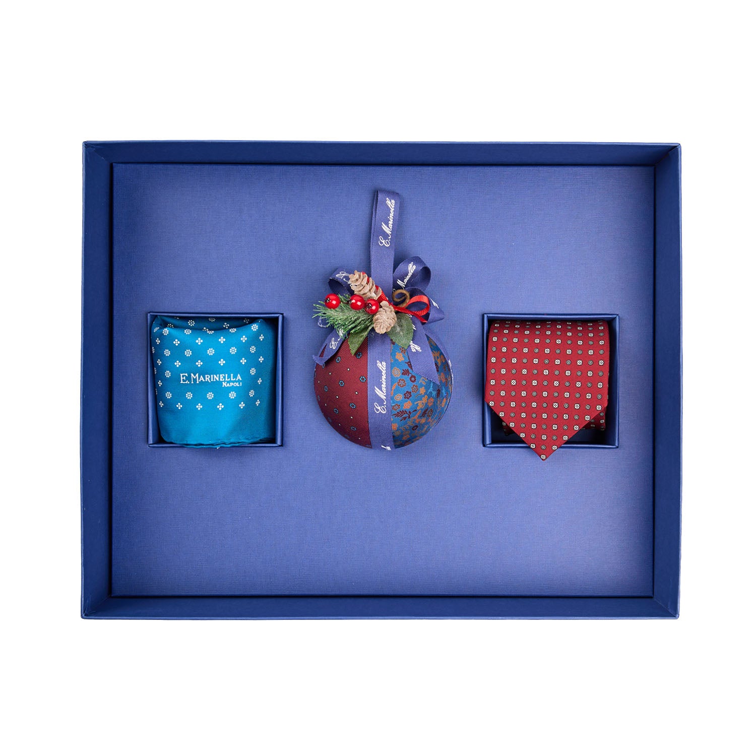 BOX DI NATALE CON CRAVATTA BURGUNDY E POCHETTE BLU MEDIO