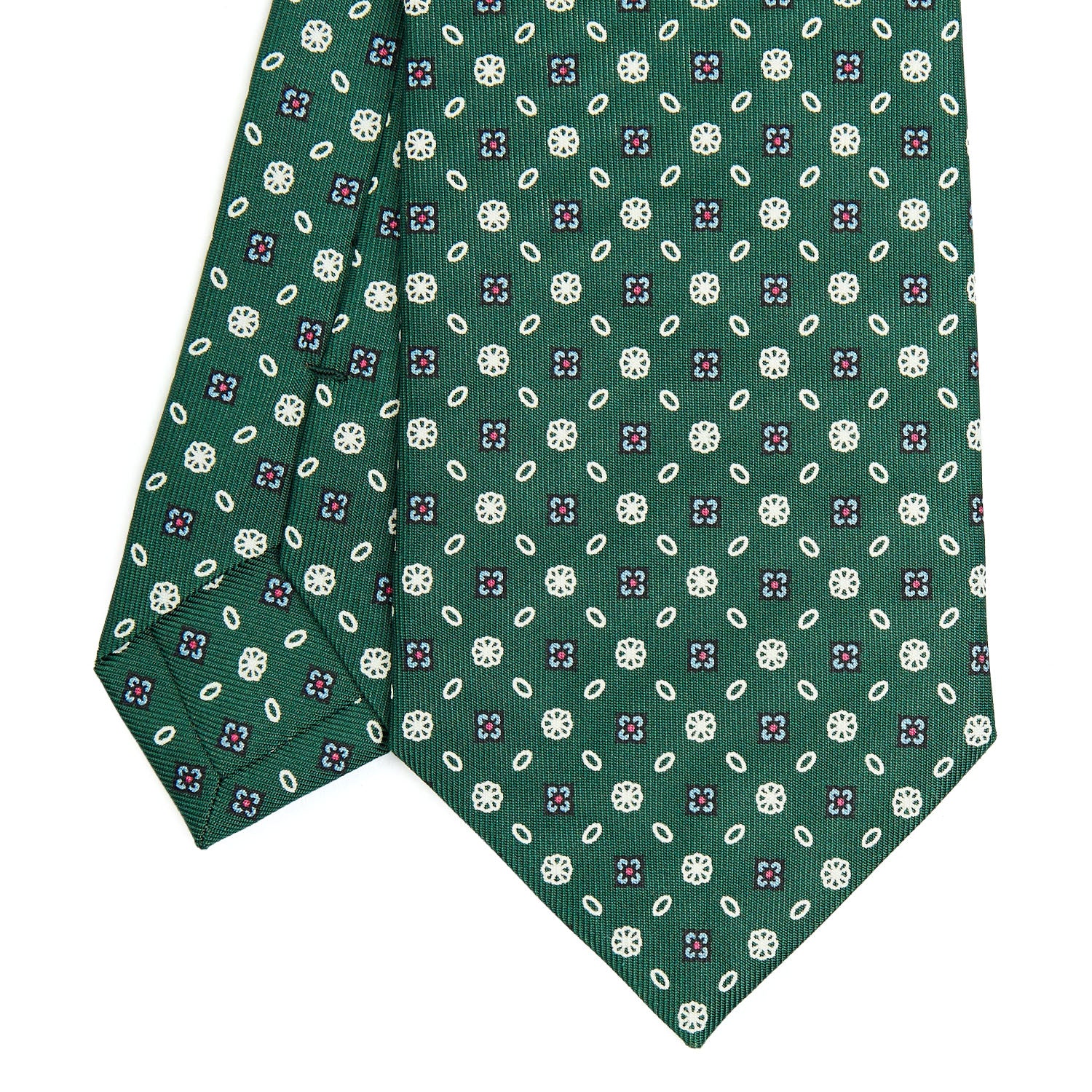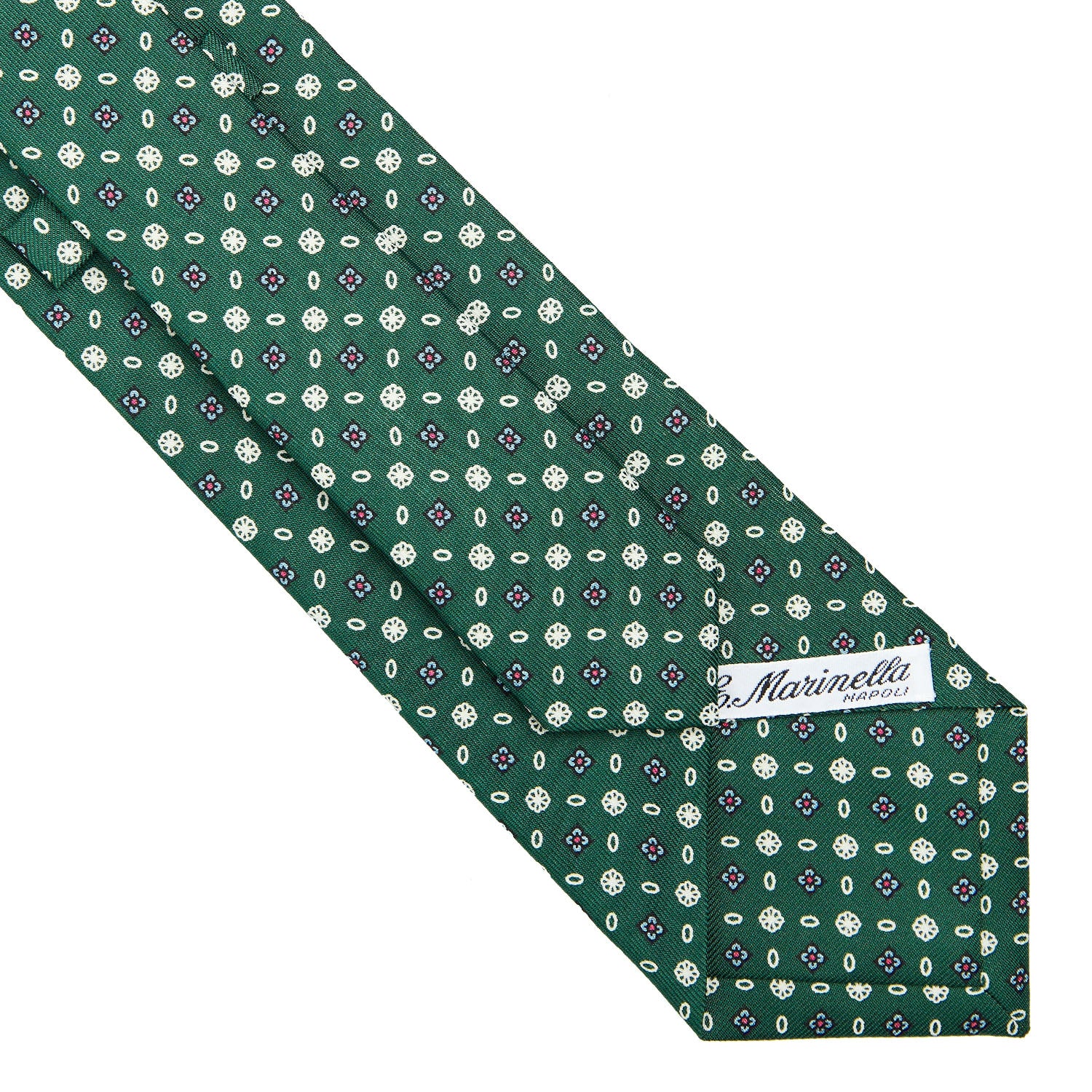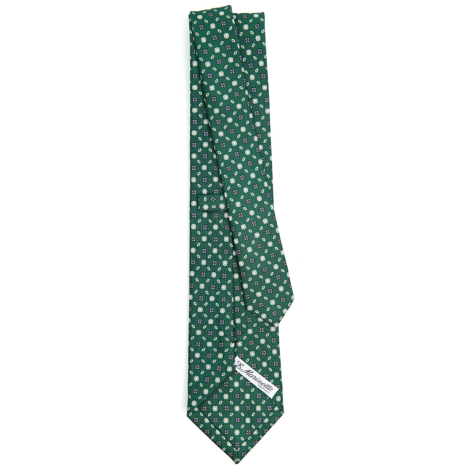 La cravatta E. Marinella è un prodotto totalmente artigianale. Dalla stampa a mano della seta al taglio singolo del tessuto, alla chiusura del prodotto finito. Caratterizzata da colori vivaci ma mai eccessivi e da microfantasie floreali e geometriche, si distingue anche per la fodera realizzata con lo stesso tessuto fantasia.