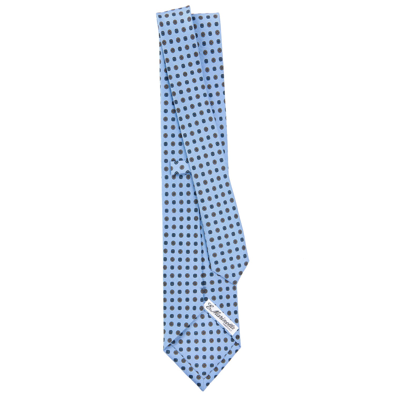 La cravatta E. Marinella è un prodotto totalmente artigianale. Dalla stampa a mano della seta al taglio singolo del tessuto, alla chiusura del prodotto finito. Caratterizzata da colori vivaci ma mai eccessivi e da microfantasie floreali e geometriche, si distingue anche per la fodera realizzata con lo stesso tessuto fantasia.