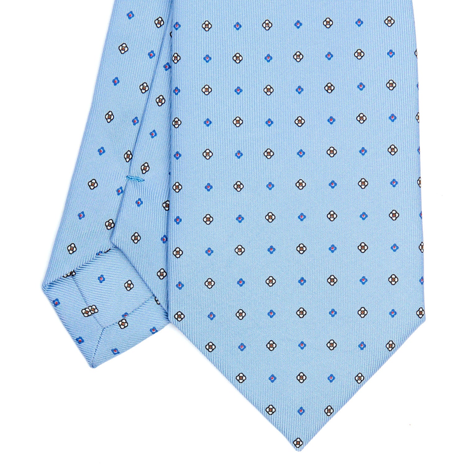 La cravatta E. Marinella è un prodotto totalmente artigianale. Dalla stampa a mano della seta al taglio singolo del tessuto, alla chiusura del prodotto finito. Caratterizzata da colori vivaci ma mai eccessivi e da microfantasie floreali e geometriche, si distingue anche per la fodera realizzata con lo stesso tessuto fantasia. Cravatta 3 pieghe