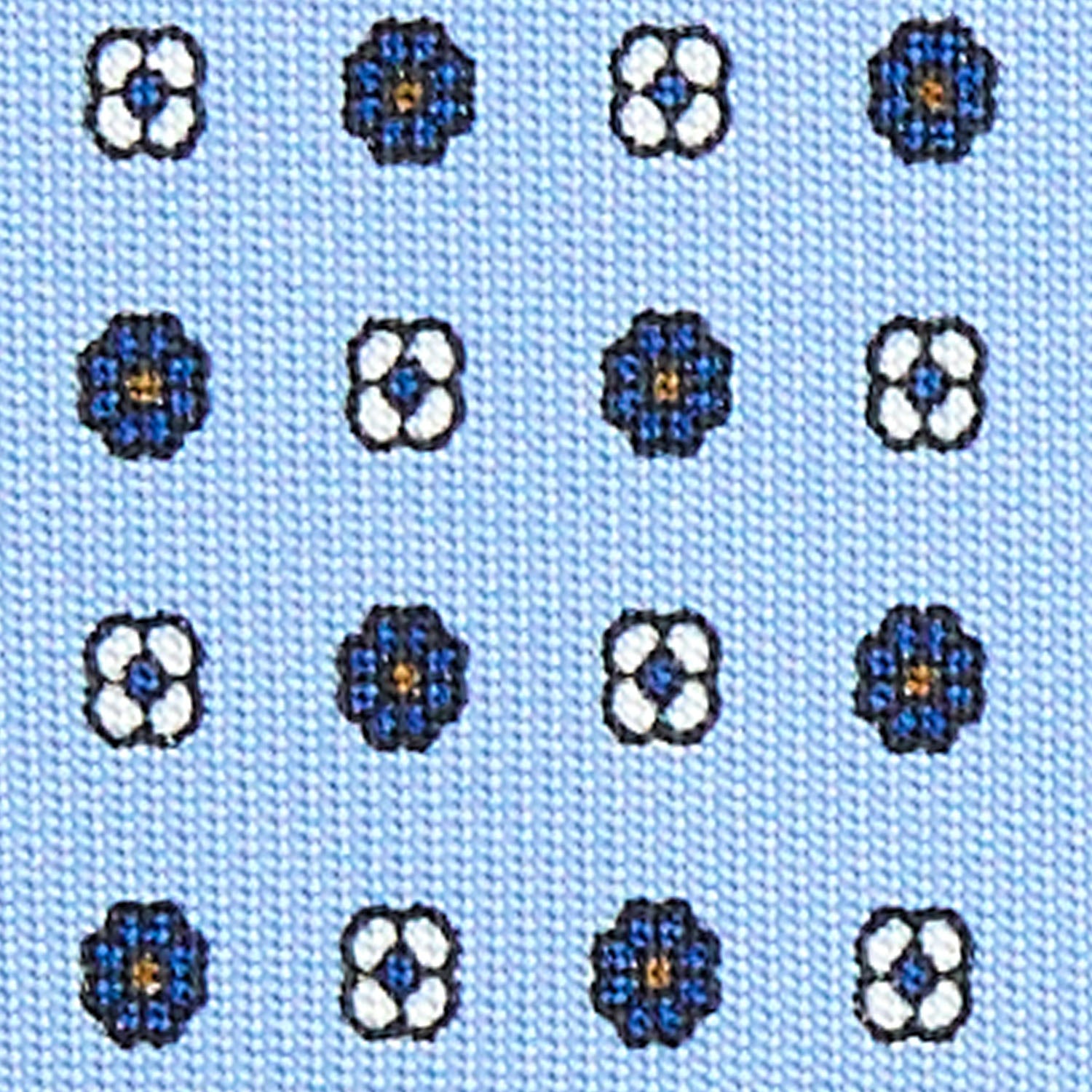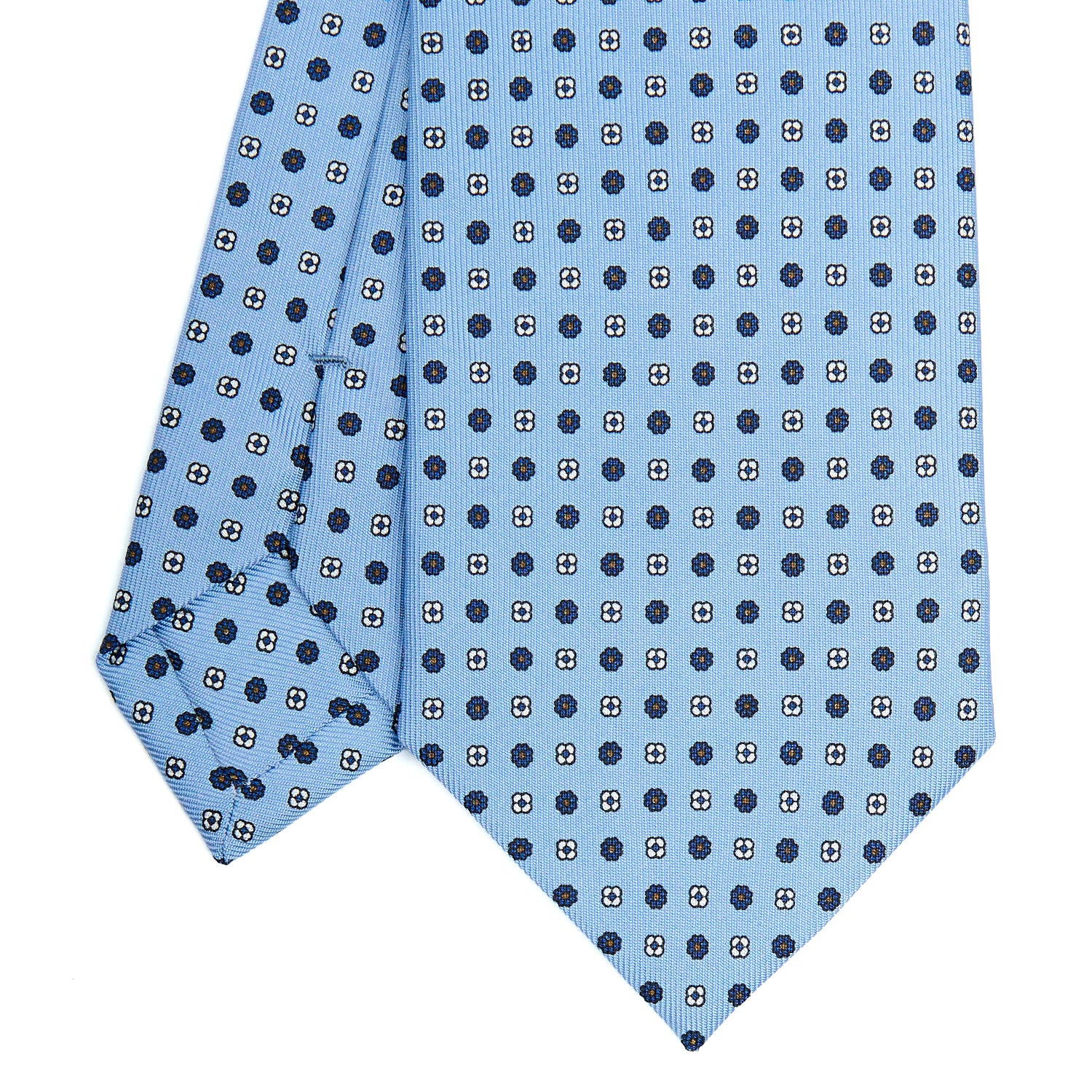 La cravatta E. Marinella è un prodotto totalmente artigianale. Dalla stampa a mano della seta al taglio singolo del tessuto, alla chiusura del prodotto finito. Caratterizzata da colori vivaci ma mai eccessivi e da microfantasie floreali e geometriche, si distingue anche per la fodera realizzata con lo stesso tessuto fantasia. Cravatta 3 pieghe