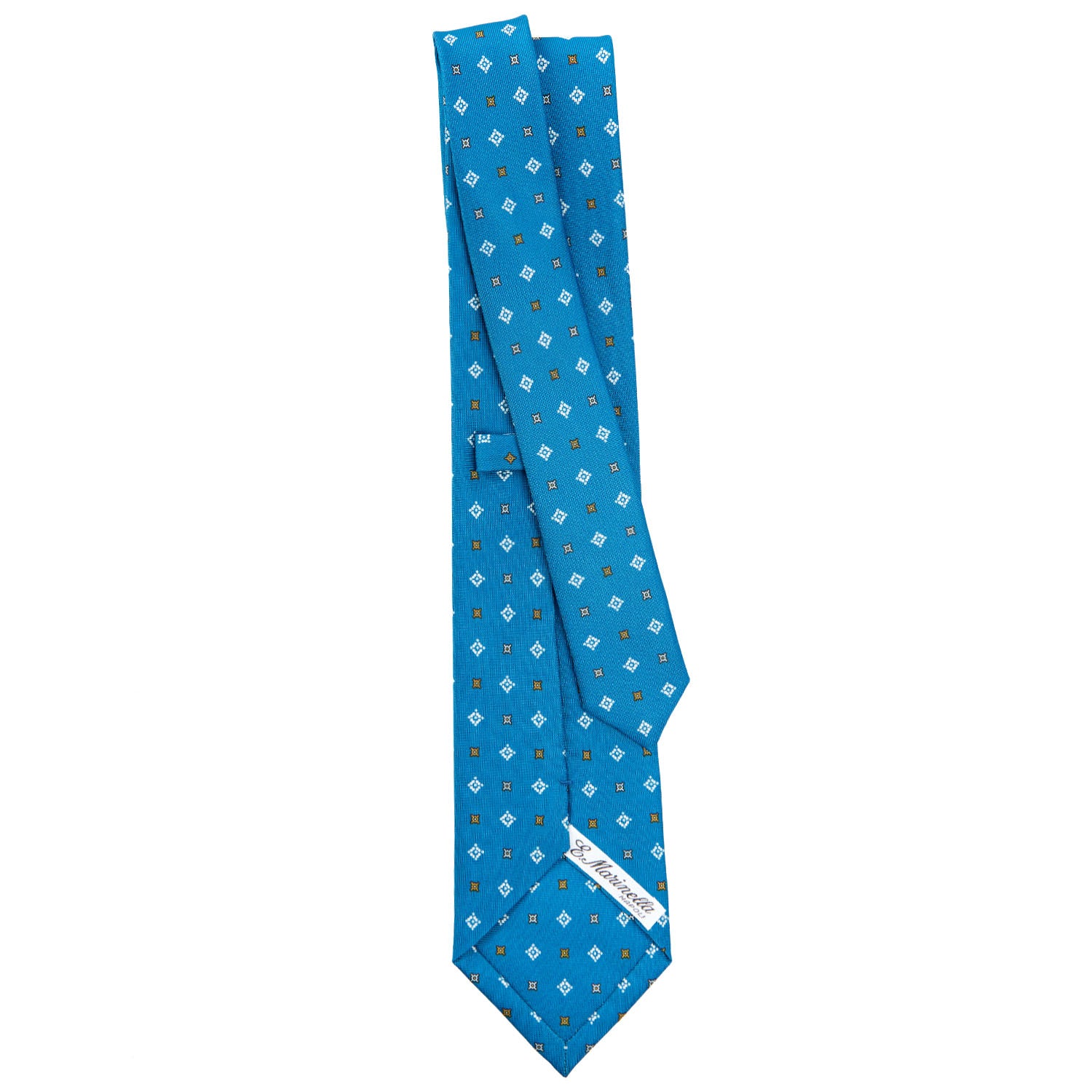 La cravatta E.Marinella è un prodotto totalmente artigianale. Dalla stampa a mano della seta al taglio singolo del tessuto, alla chiusura del prodotto finito. Caratterizzata da colori vivaci ma mai eccessivi e da microfantasie floreali e geometriche, si distingue anche per la fodera realizzata con lo stesso tessuto fantasia.