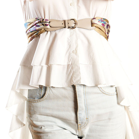 SCALDACOLLO CAMMELLO E GRIGIO CHIARO DOPPIO INTRECCIO