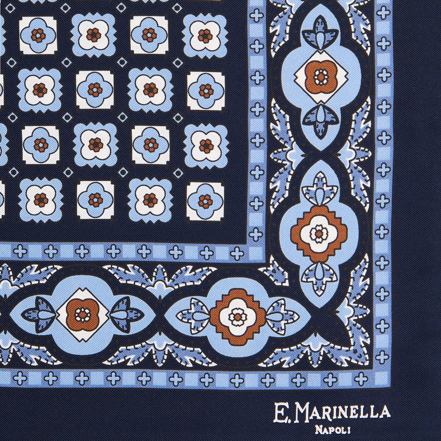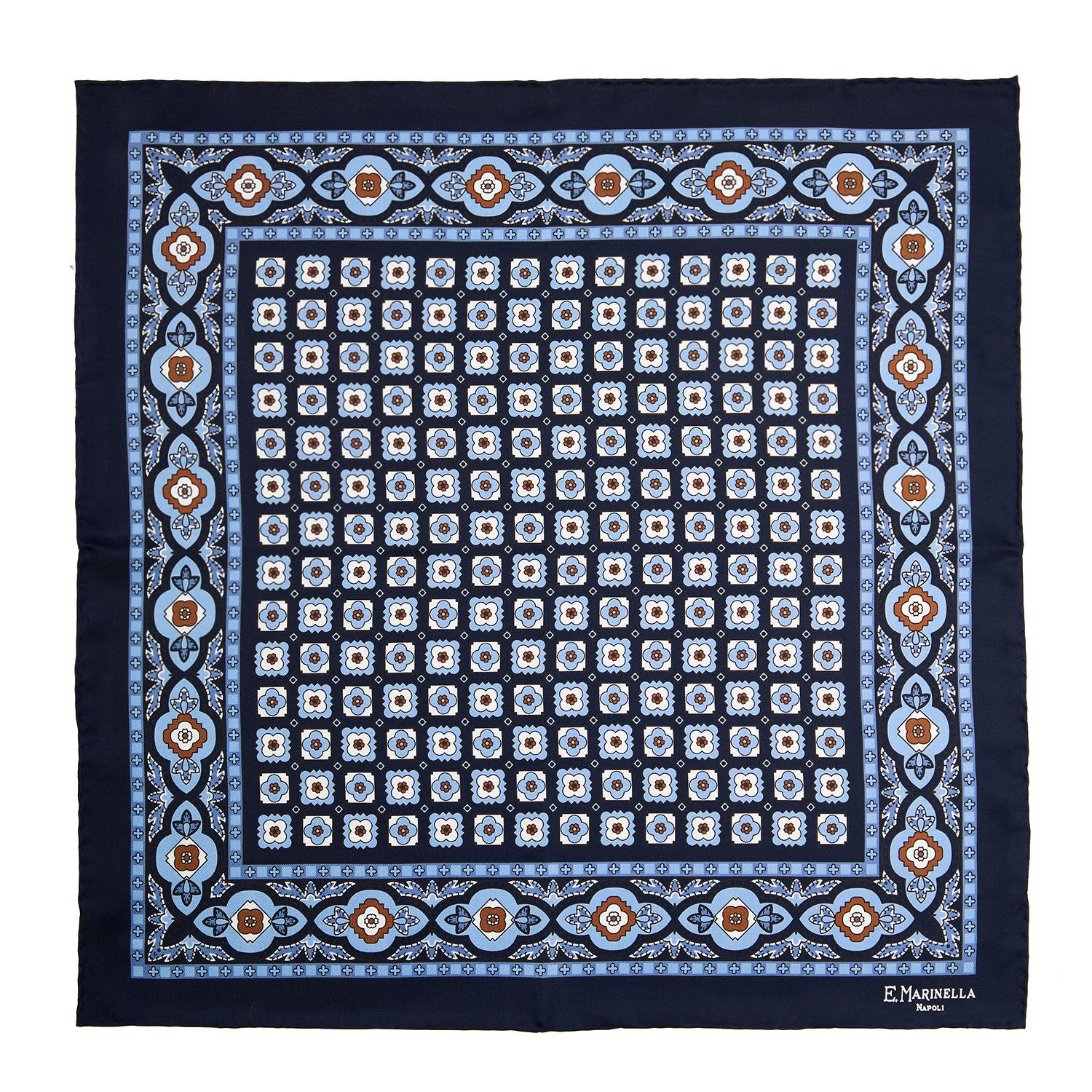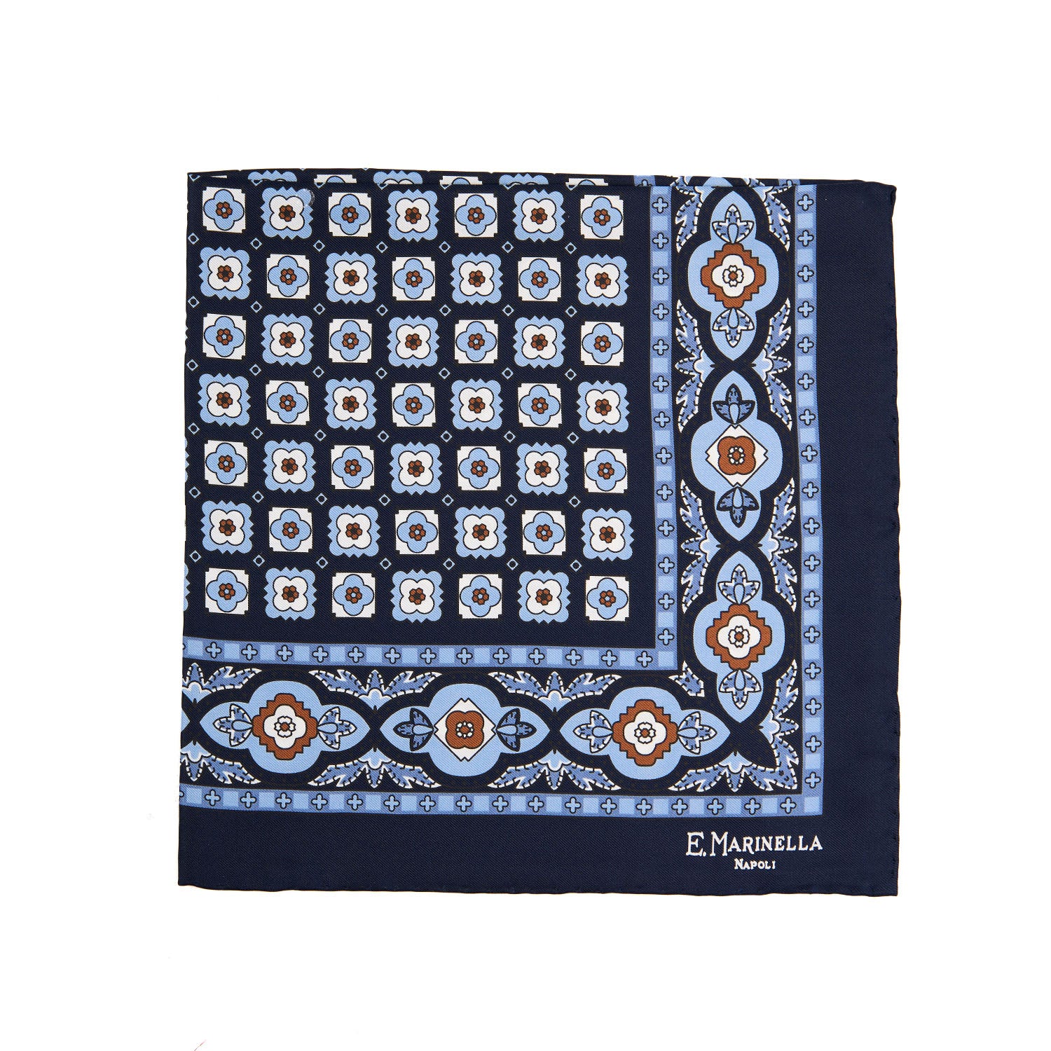 POCHETTE DA TASCHINO IN SETA STAMPATA A MANO BLU SCURO