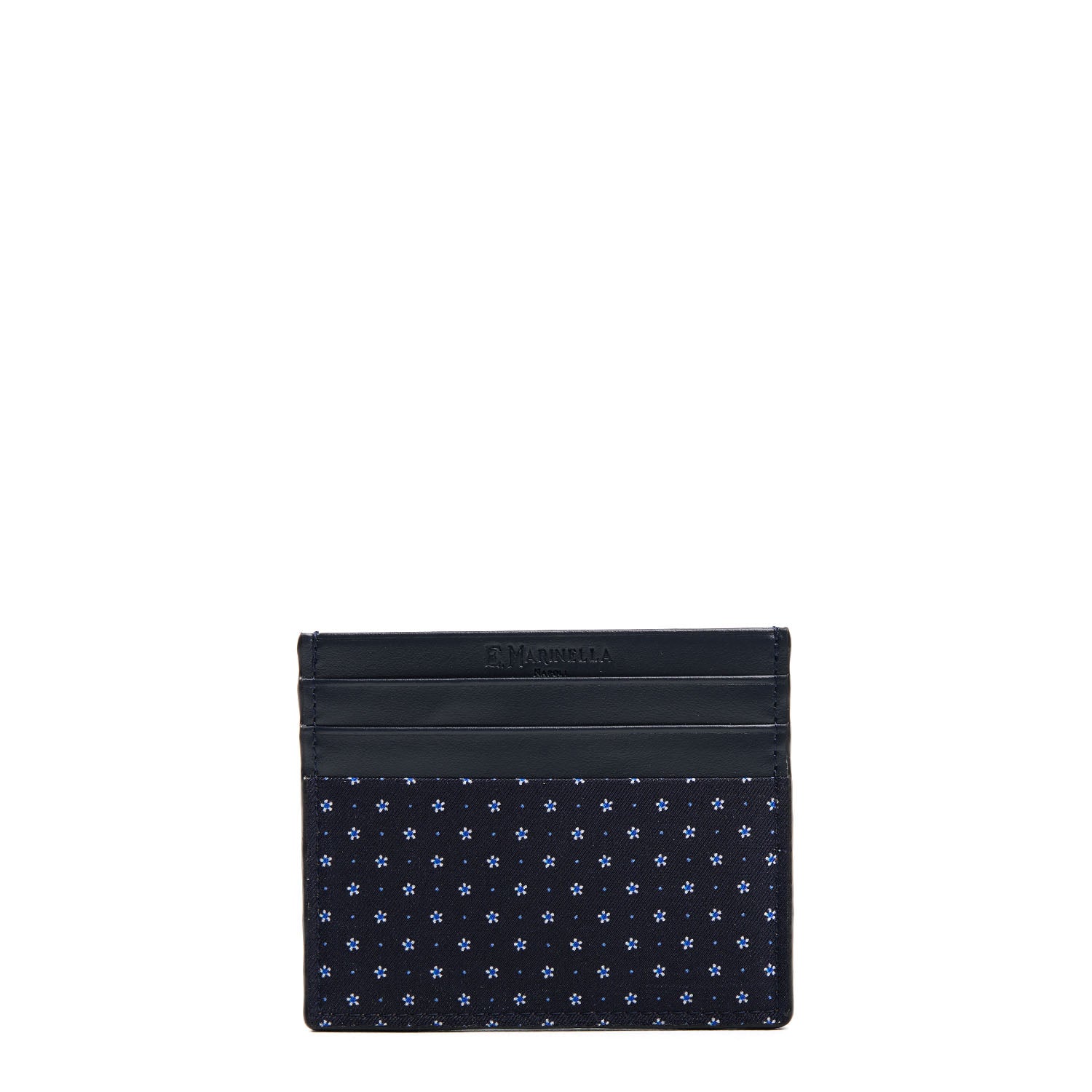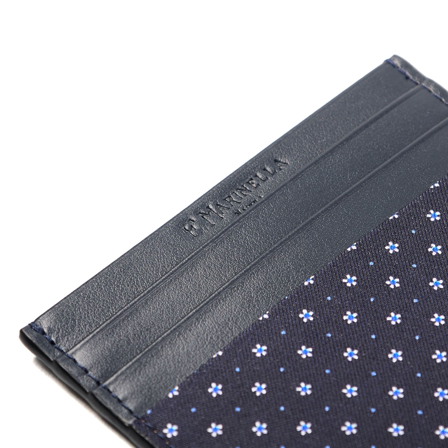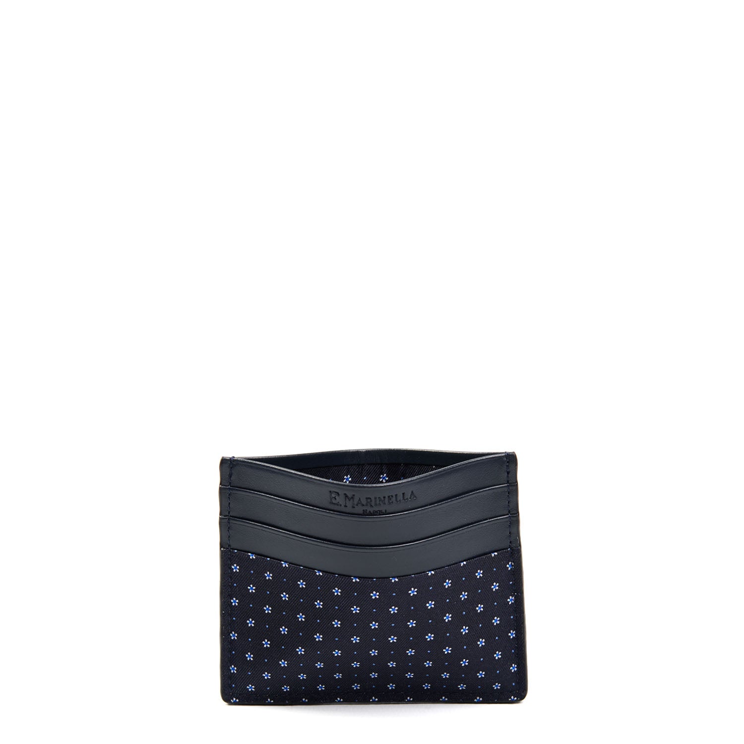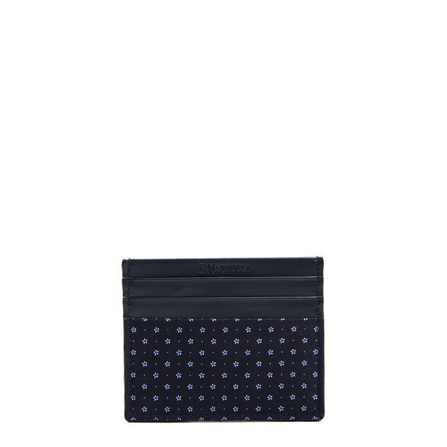 PORTACARTE DI CREDITO SETA E PELLE BLU SCURO