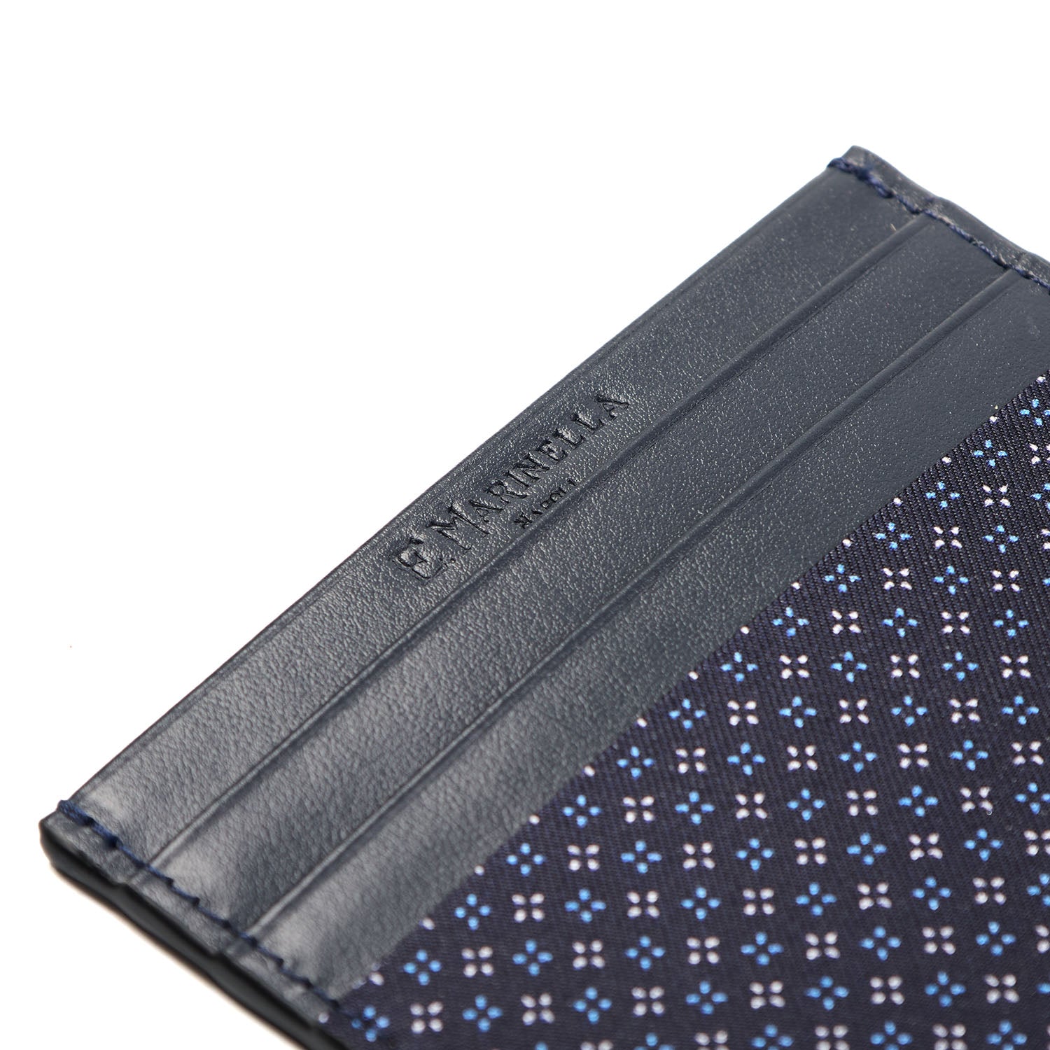 PORTACARTE DI CREDITO SETA E PELLE BLU SCURO
