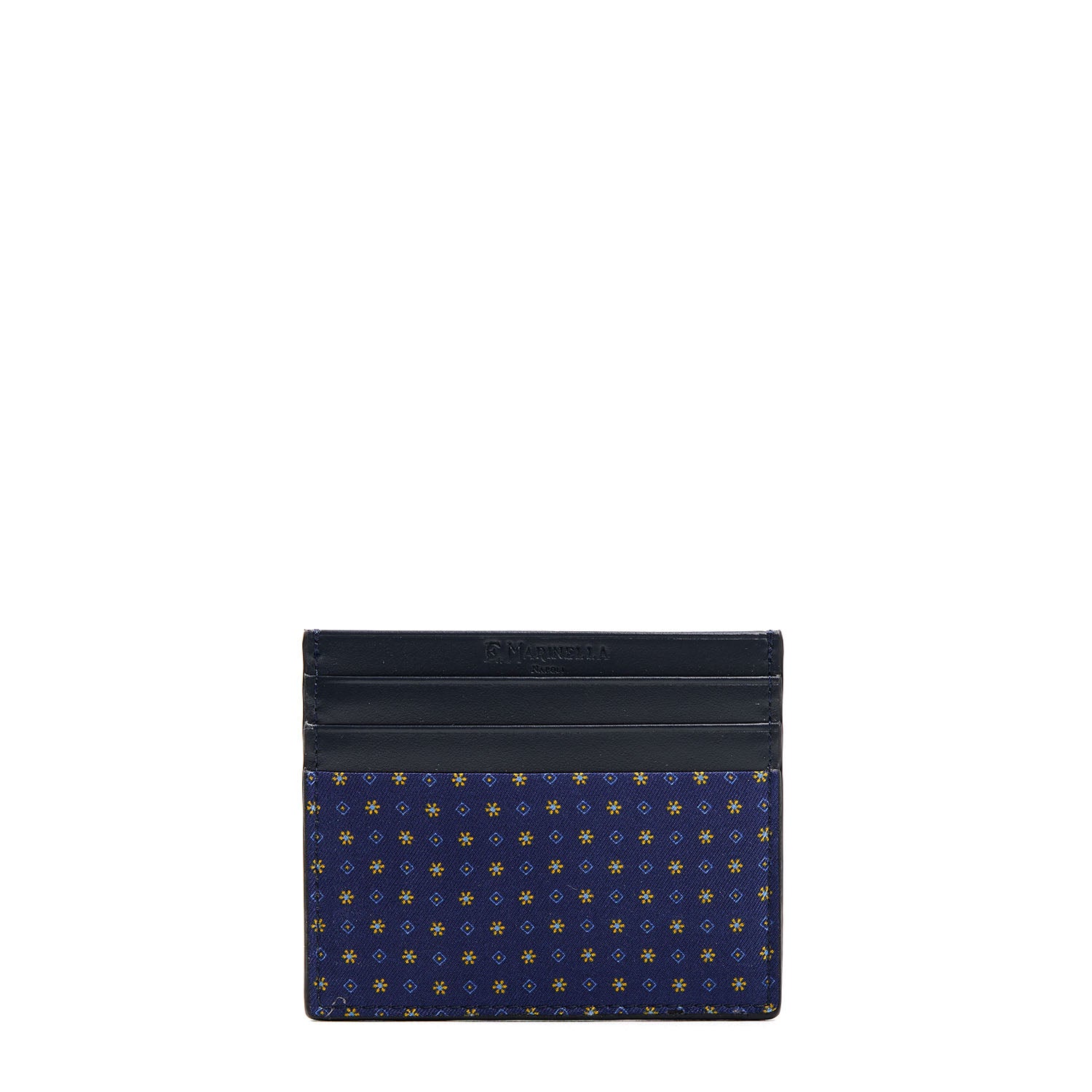 La seta microfantasia stampata a mano impreziosisce e rende unico questo piccolo accessorio comodo e compatto, arricchendone di colore e contrasti la base in pelle. Il prodotto è realizzato completamente a mano.