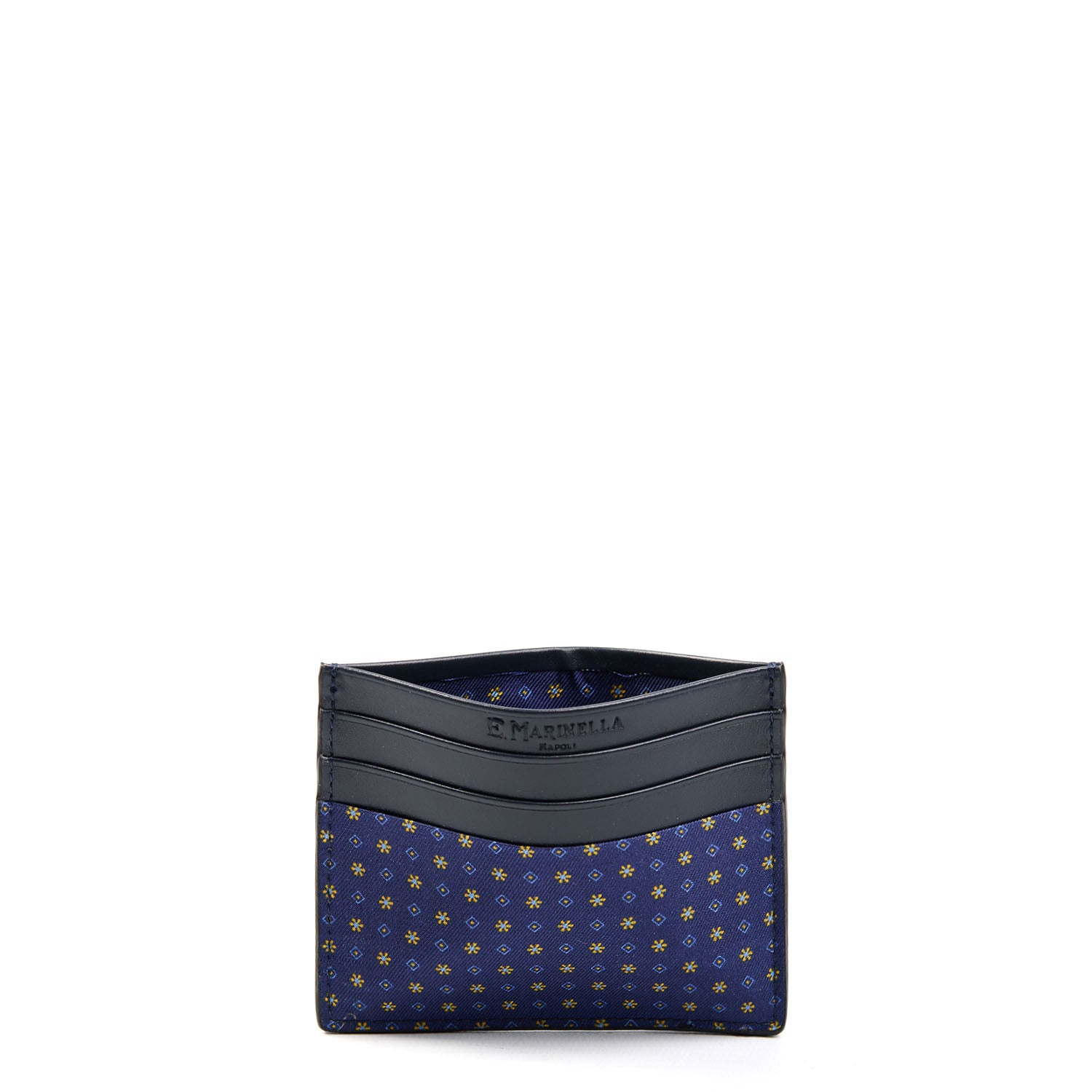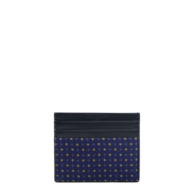 PORTACARTE DI CREDITO SETA E PELLE BLU SCURO