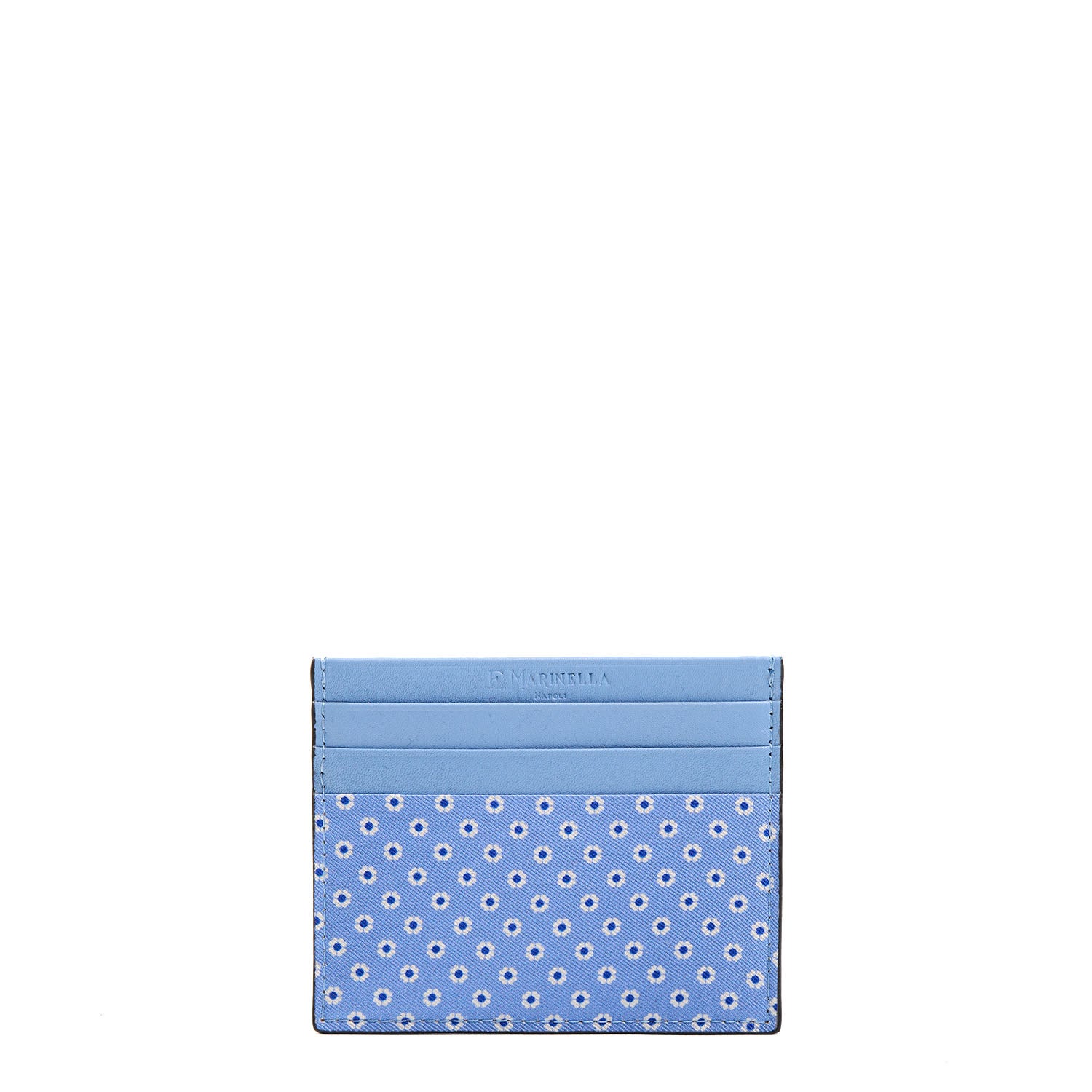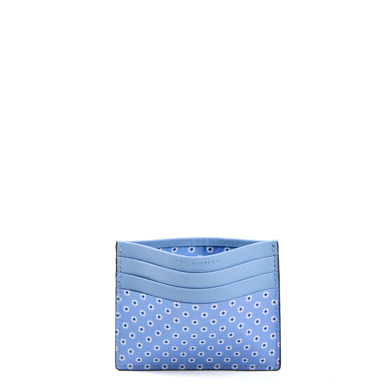 PORTACARTE DI CREDITO SETA E PELLE AZZURRO