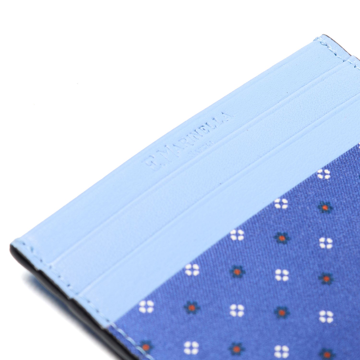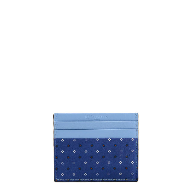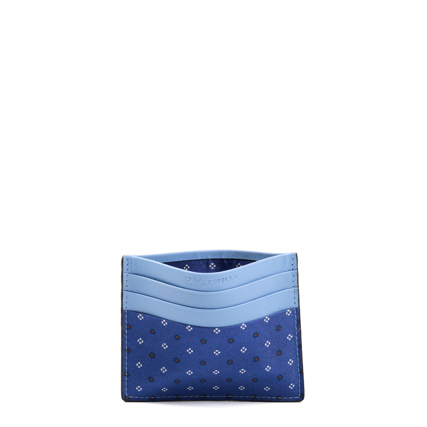 PORTACARTE DI CREDITO SETA E PELLE AZZURRO POLVERE
