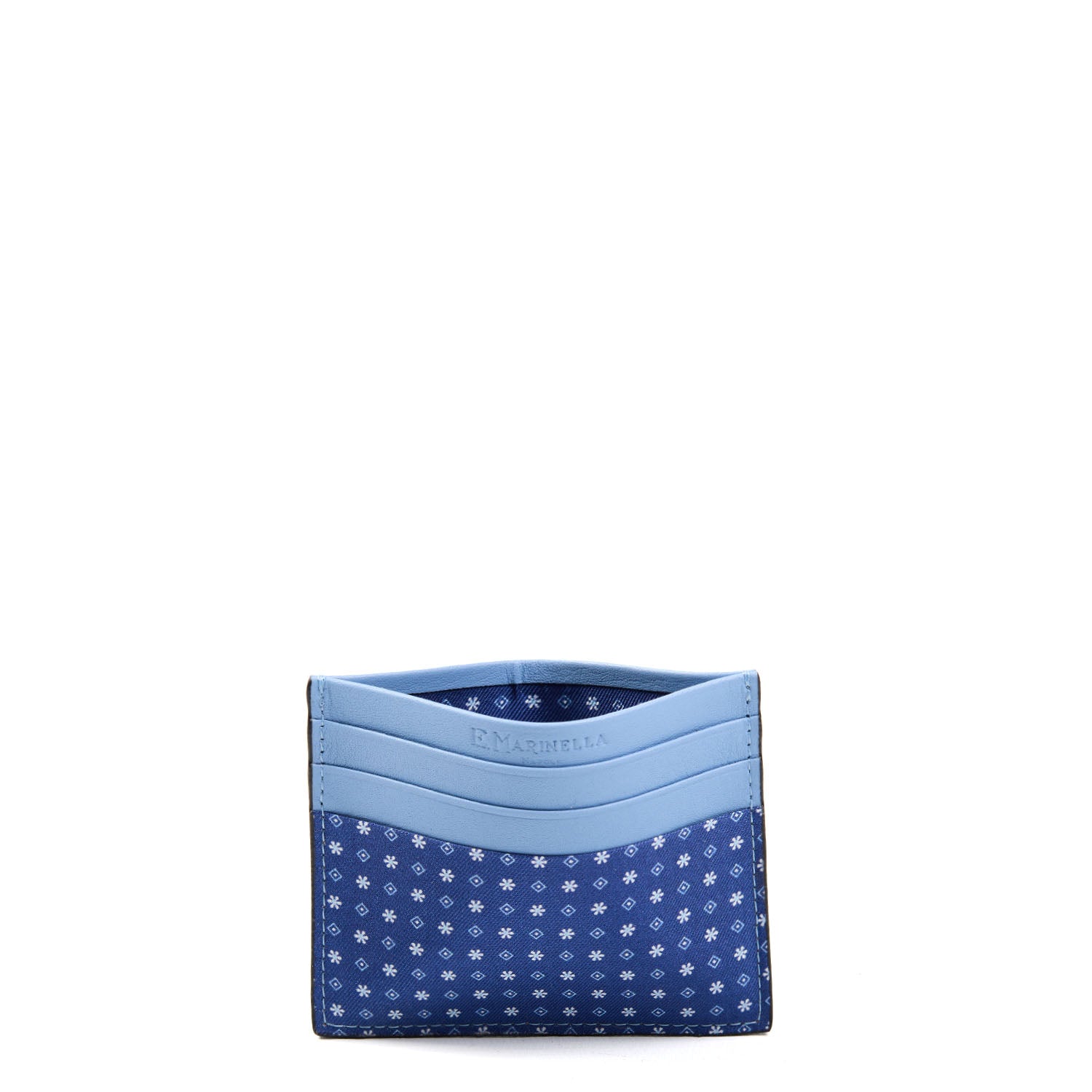 PORTACARTE DI CREDITO SETA E PELLE AZZURRO POLVERE