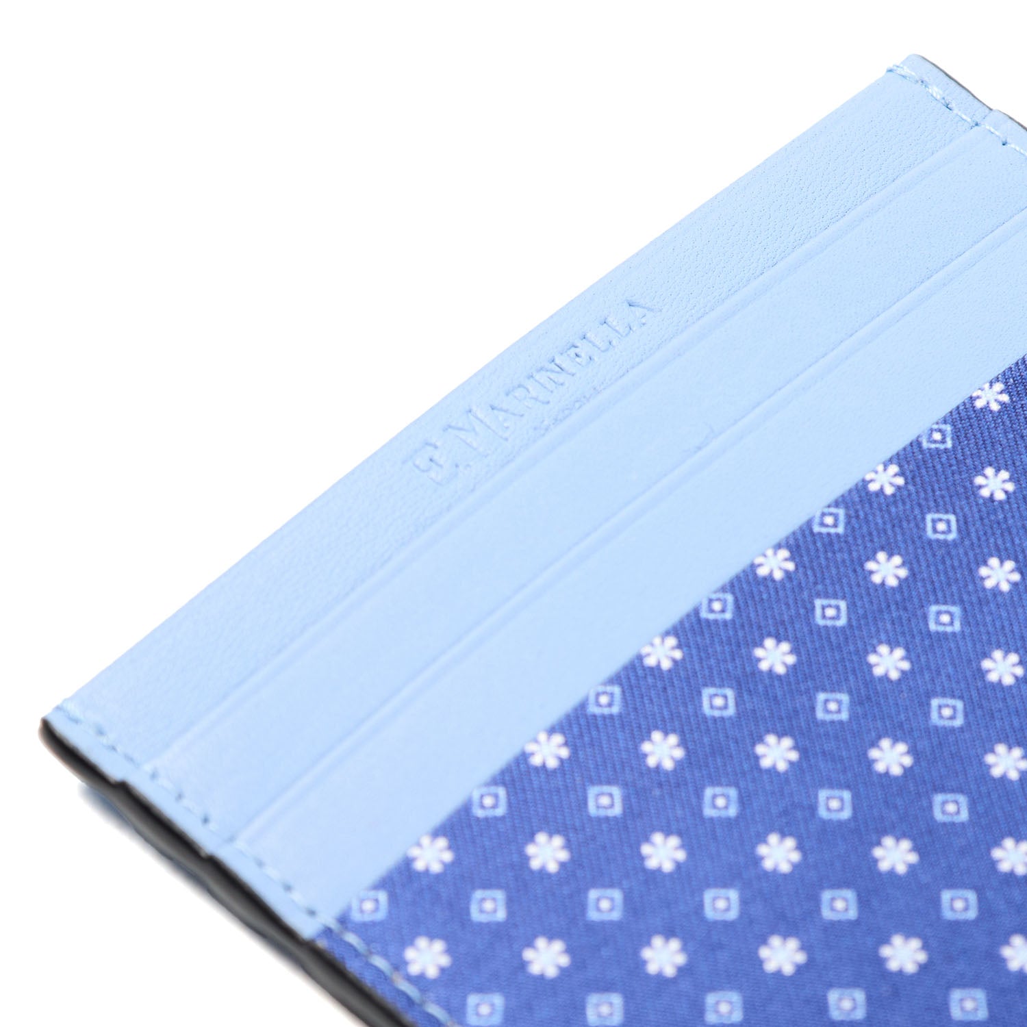 La seta microfantasia stampata a mano impreziosisce e rende unico questo piccolo accessorio comodo e compatto, arricchendone di colore e contrasti la base in pelle. Il prodotto è realizzato completamente a mano. Numero tasche: 5