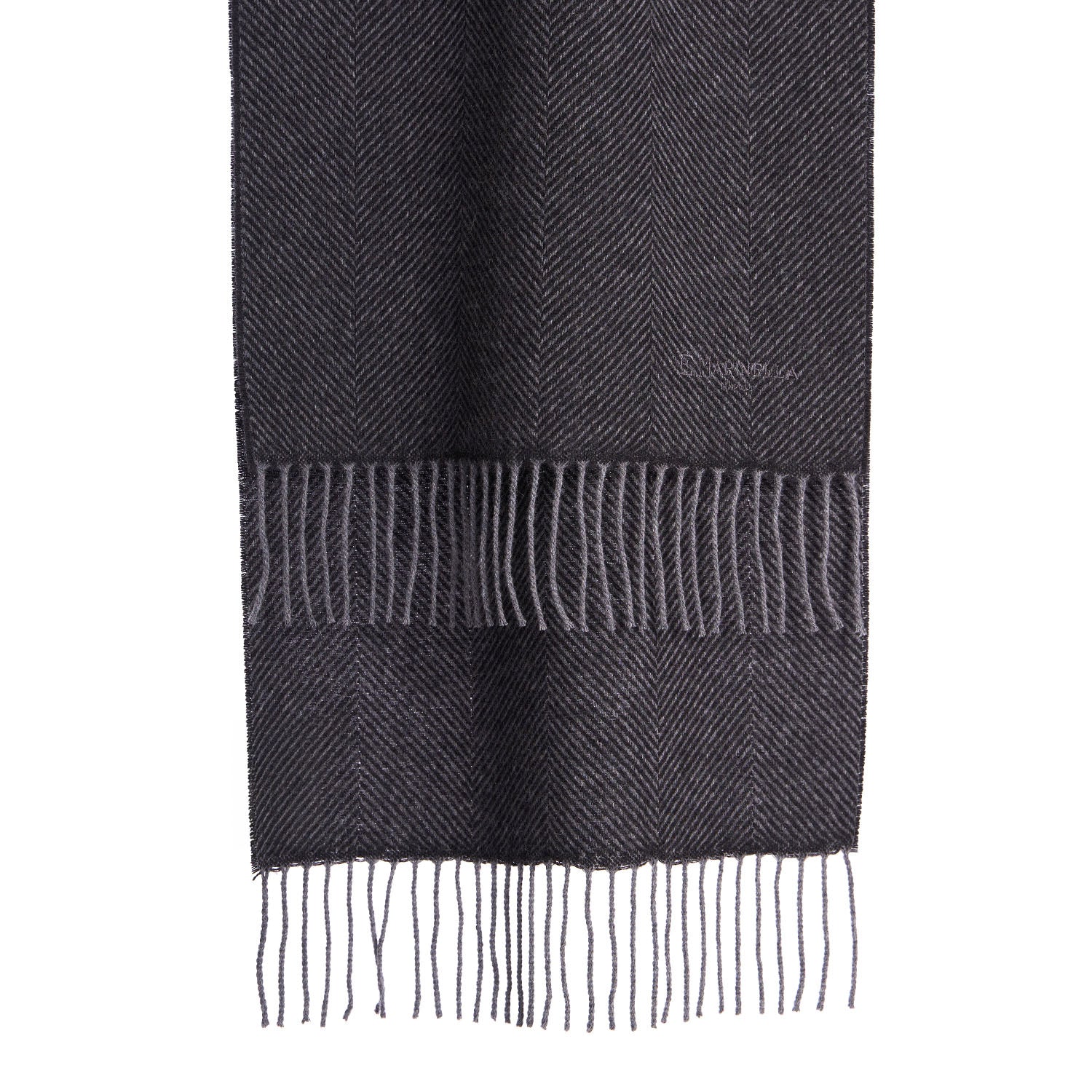 Sciarpa in puro cashmere tinta unita con logo E.Marinella ricamato tono su tono e frangia finale. Morbida e avvolgente, dalle linee classiche e tradizionali per essere abbinata sia in contesti formali che casual durante i freddi mesi invernali.