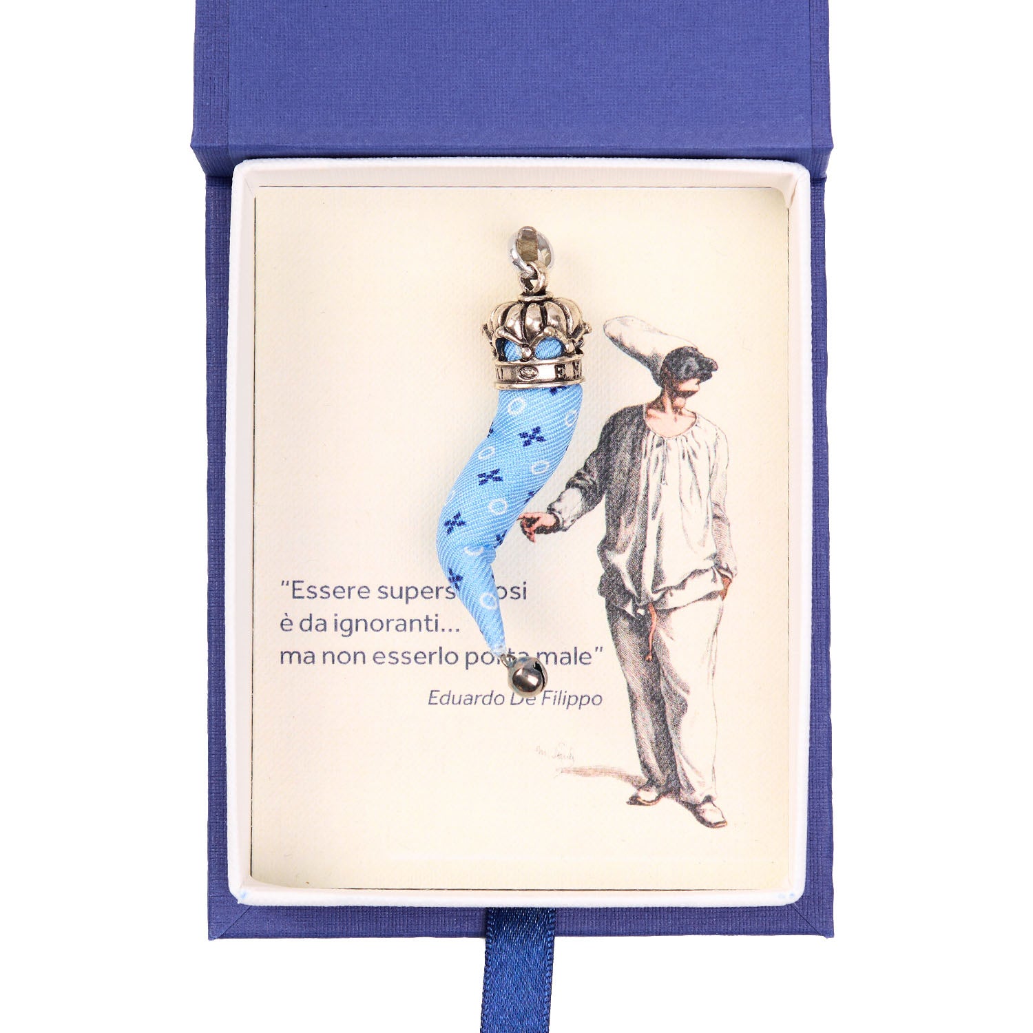 Il cornetto portafortuna E. Marinella è realizzato con le preziose sete stampate a mano della Maison, trasformando tessuti di alta qualità in amuleti di tradizione napoletana. Impreziositi da finiture in metallo argentato e presentati in raffinate confezioni regalo, i cornetti sono il perfetto simbolo di eleganza sartoriale e buon auspicio. Made in Italy
