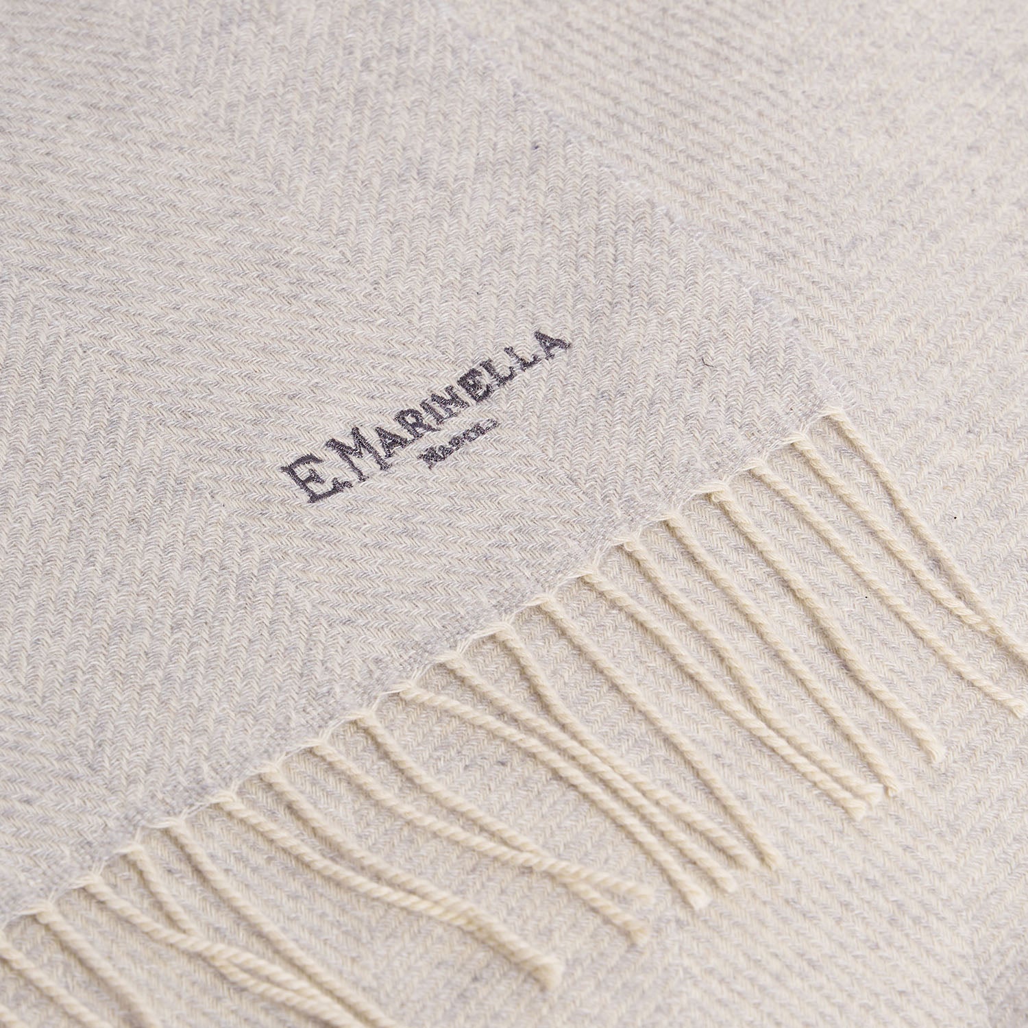 Sciarpa in puro cashmere tinta unita con logo E.Marinella ricamato tono su tono e frangia finale. Morbida e avvolgente, dalle linee classiche e tradizionali per essere abbinata sia in contesti formali che casual durante i freddi mesi invernali.
