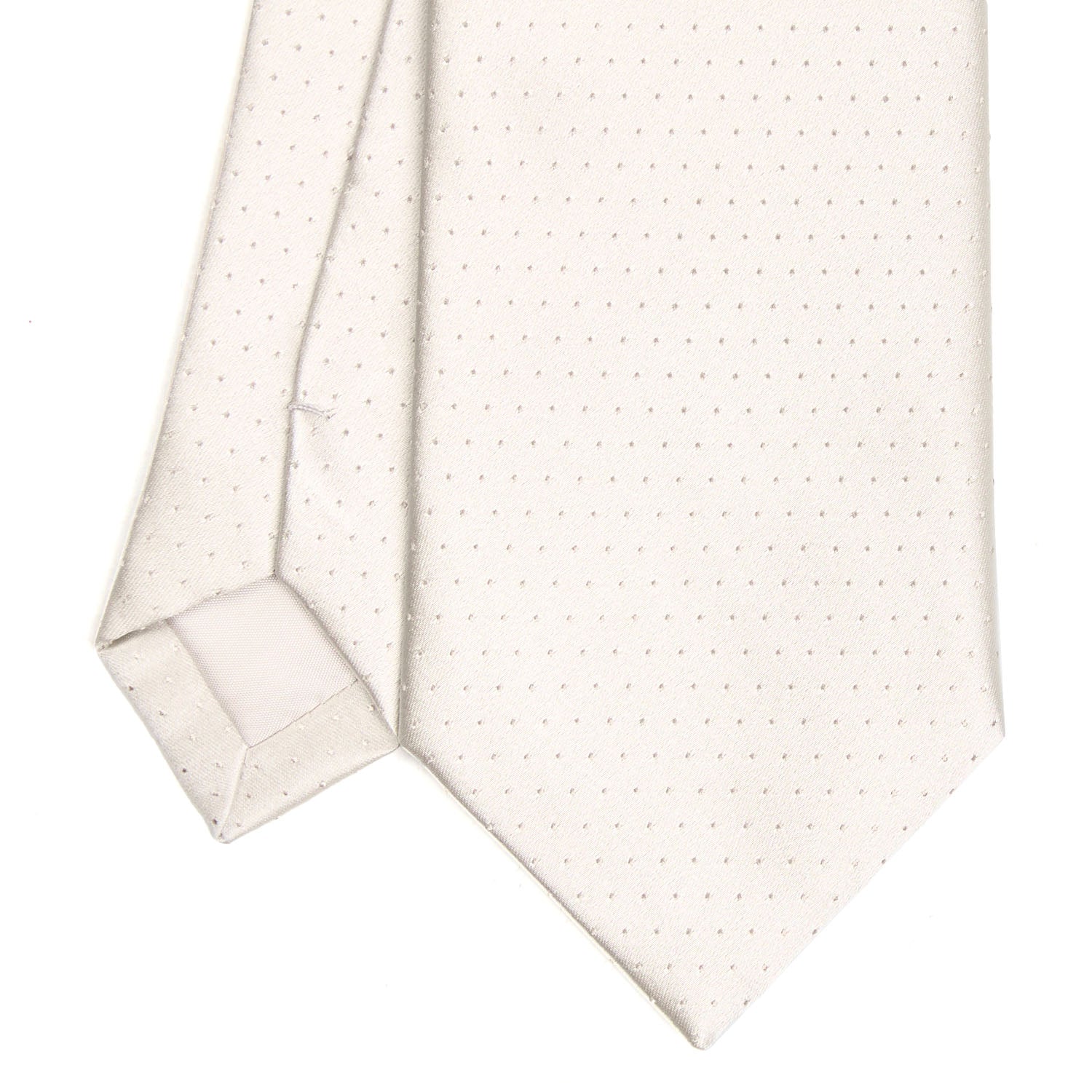 La cravatta in raso di seta è interamente realizzata a mano.Grazie alla lucentezza naturale della seta conferisce un effetto liscio dall'aspetto cangiante. La cravatta è arricchita da disegno micro-pois ed è consigliata per cerimonia di giorno in contesto formale. Ideale per lo sposo che sceglie uno stile classico, per i padri degli sposi ed anche i testimoni. Cravatta 3 pieghe