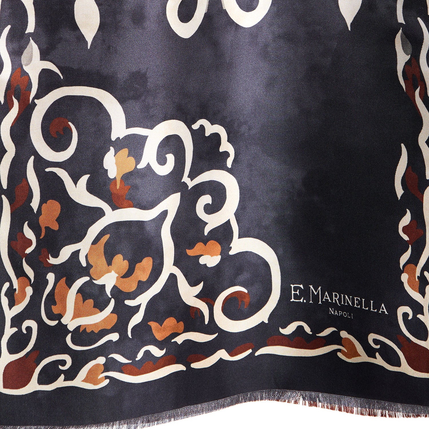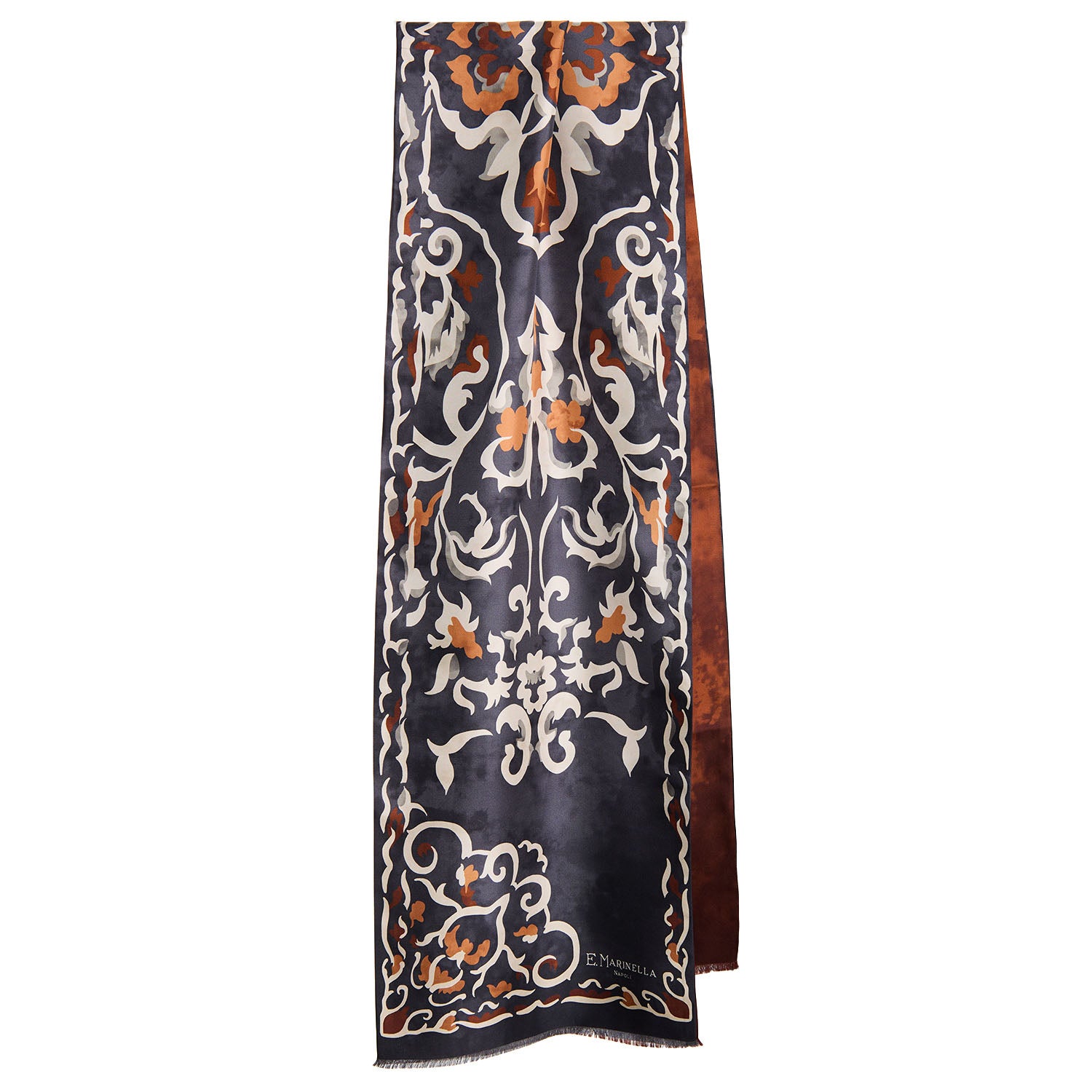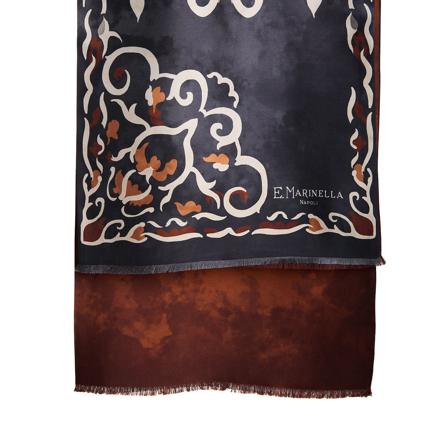 Raffinata sciarpa tubolare in twill di seta in versione double con due fantasie a contrasto per dare un tocco di originalità. Da un lato tinta unita, dall'altro con fantasia fiore e piccola frangia finale. Morbida, leggera ed elegante, da indossare tutti i giorni o, se abbinata in modo particolare, nelle occasioni speciali.