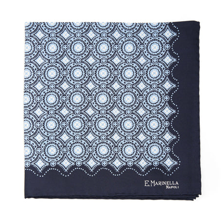 POCHETTE DA TASCHINO IN SETA STAMPATA A MANO BLU SCURO