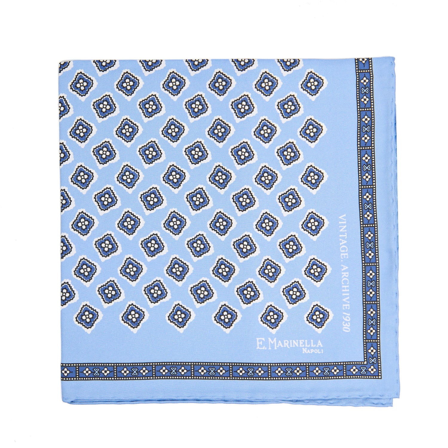 POCHETTE DA TASCHINO IN SETA STAMPATA A MANO AZZURRA