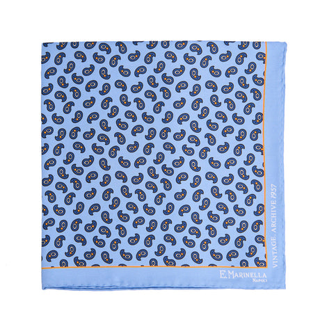 POCHETTE DA TASCHINO IN SETA STAMPATA A MANO AZZURRA
