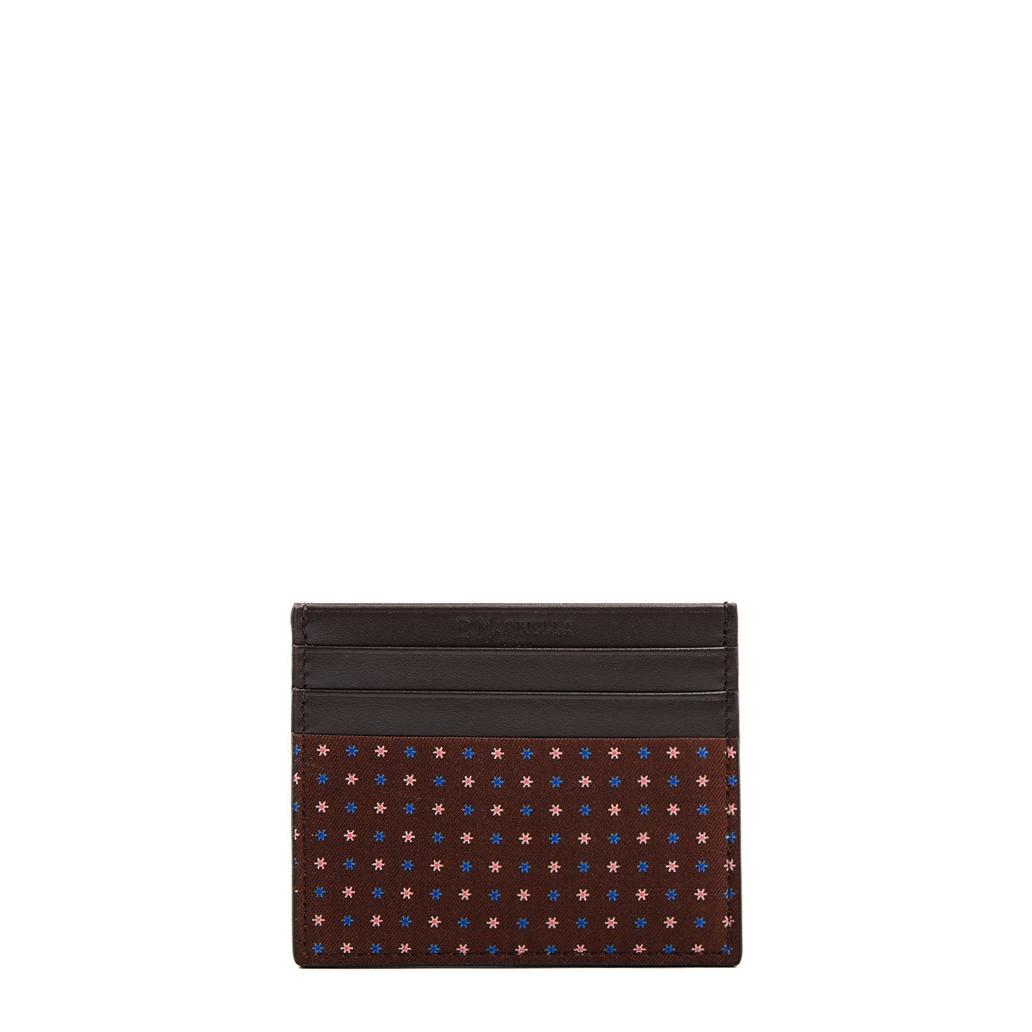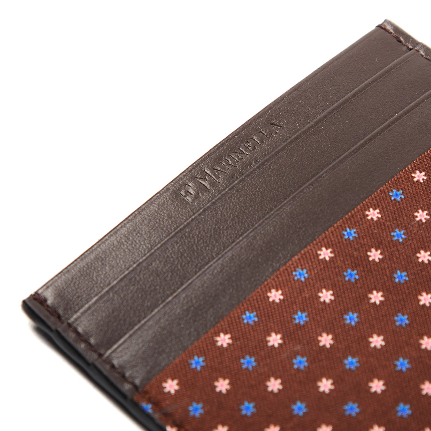 PORTACARTE DI CREDITO SETA E PELLE MARRONE SCURO