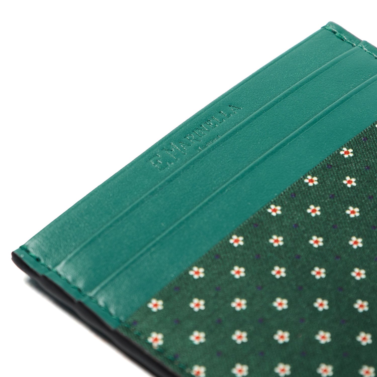 PORTACARTE DI CREDITO SETA E PELLE VERDE SCURO