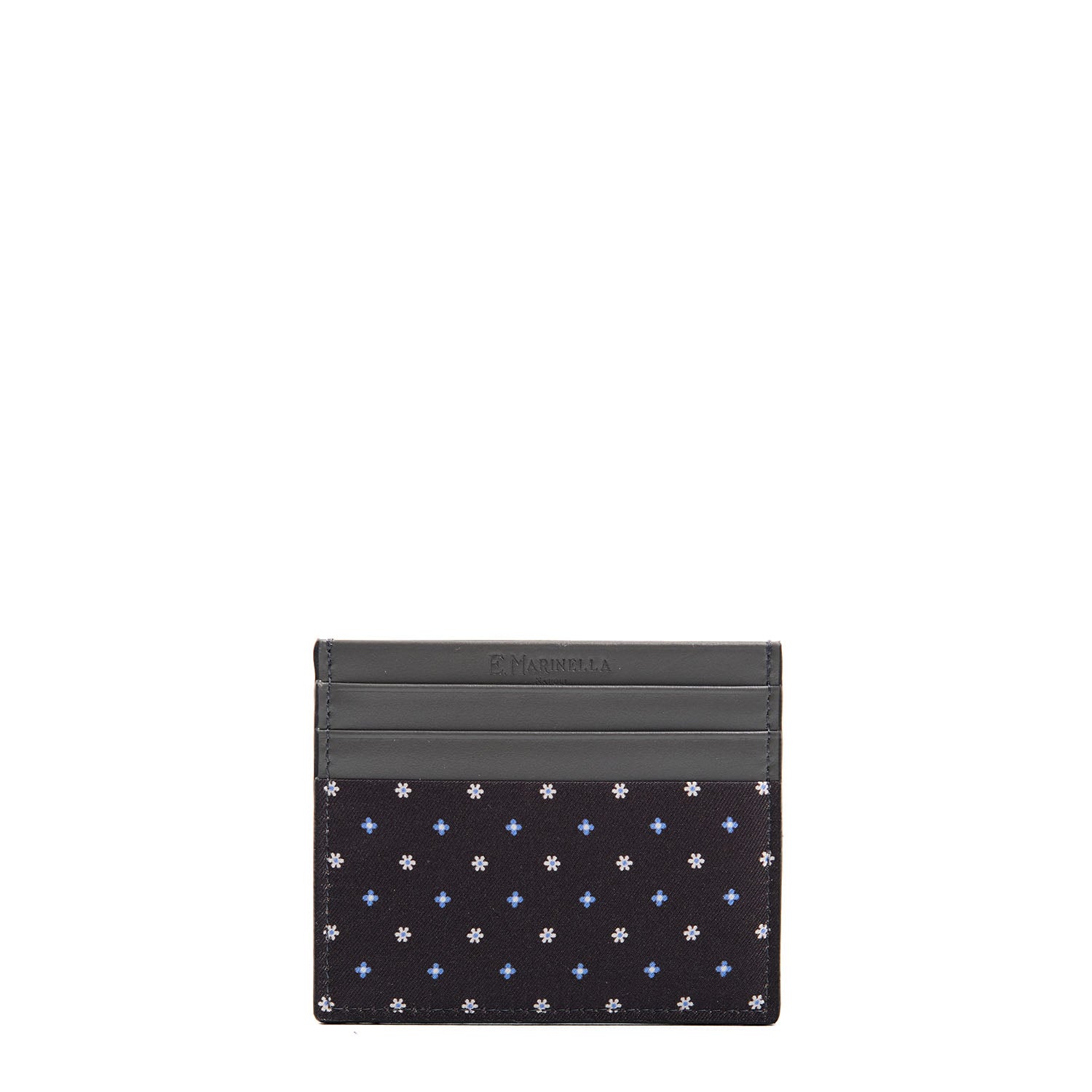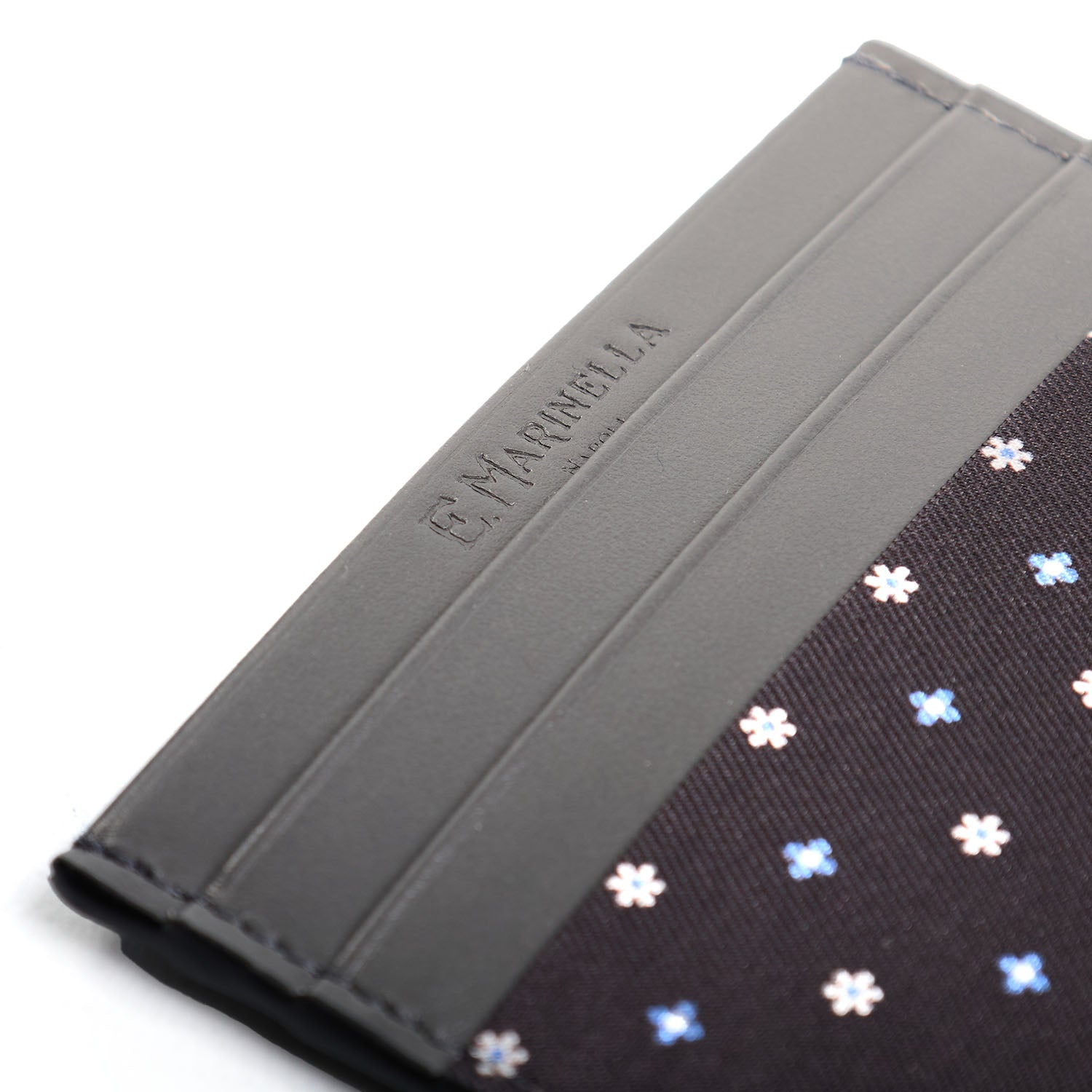 PORTACARTE DI CREDITO SETA E PELLE GRIGIO SCURO