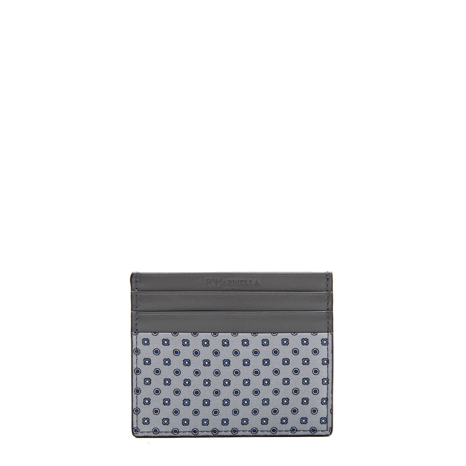PORTACARTE DI CREDITO SETA E PELLE GRIGIO SCURO