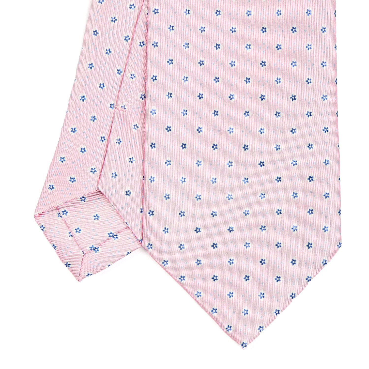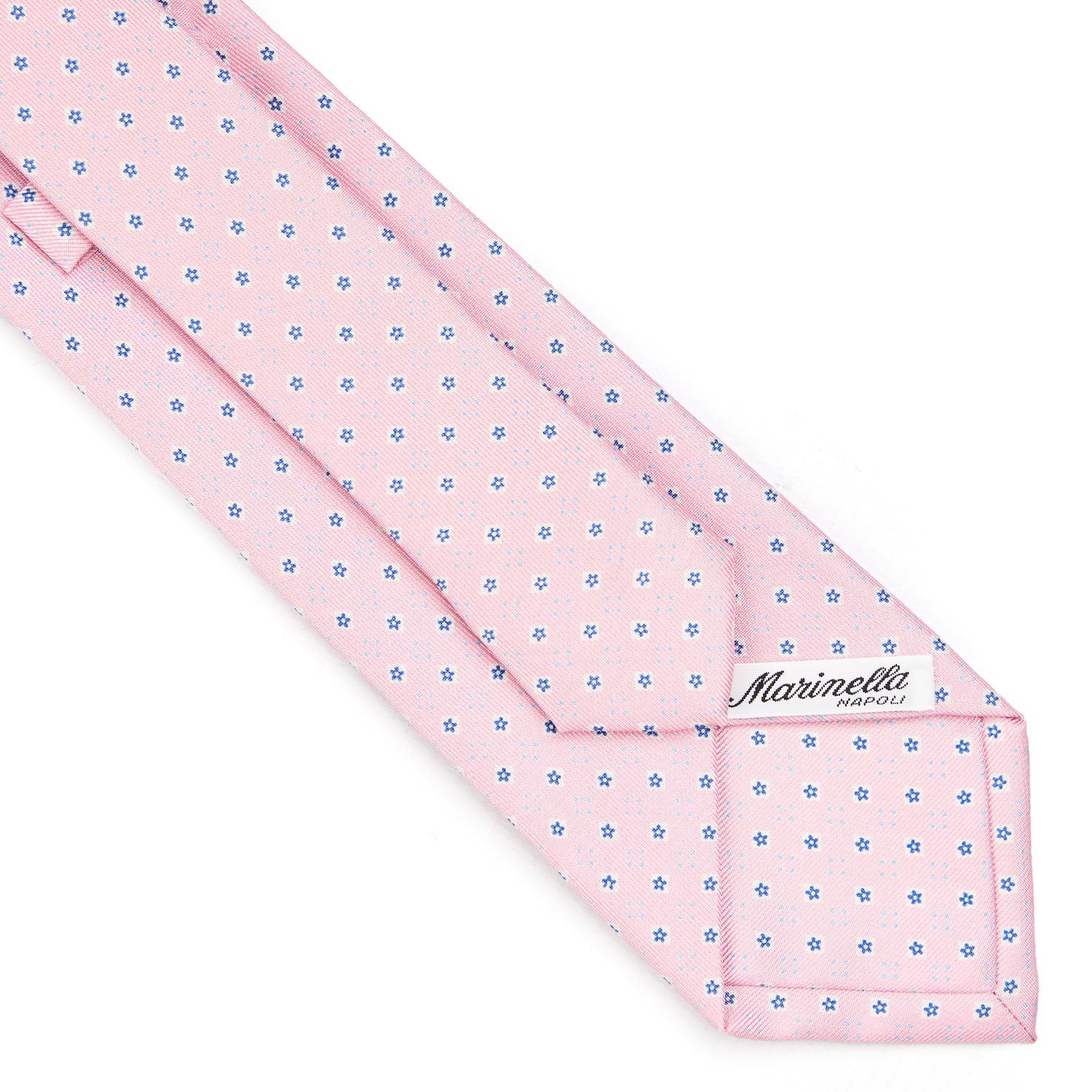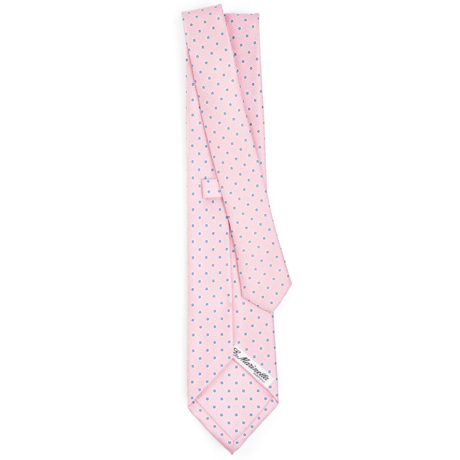 La cravatta E.Marinella è un prodotto totalmente artigianale. Dalla stampa a mano della seta al taglio singolo del tessuto, alla chiusura del prodotto finito. Caratterizzata da colori vivaci ma mai eccessivi e da microfantasie floreali e geometriche, si distingue anche per la fodera realizzata con lo stesso tessuto fantasia. Cravatta 3 pieghe