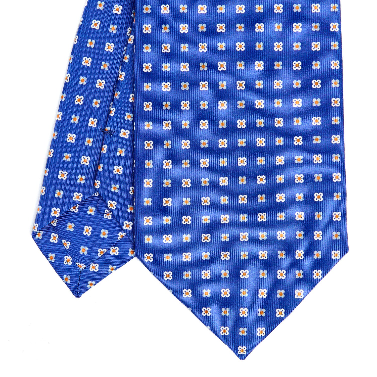 La cravatta E.Marinella è un prodotto totalmente artigianale. Dalla stampa a mano della seta al taglio singolo del tessuto, alla chiusura del prodotto finito. Caratterizzata da colori vivaci ma mai eccessivi e da microfantasie floreali e geometriche, si distingue anche per la fodera realizzata con lo stesso tessuto fantasia. Cravatta 3 pieghe