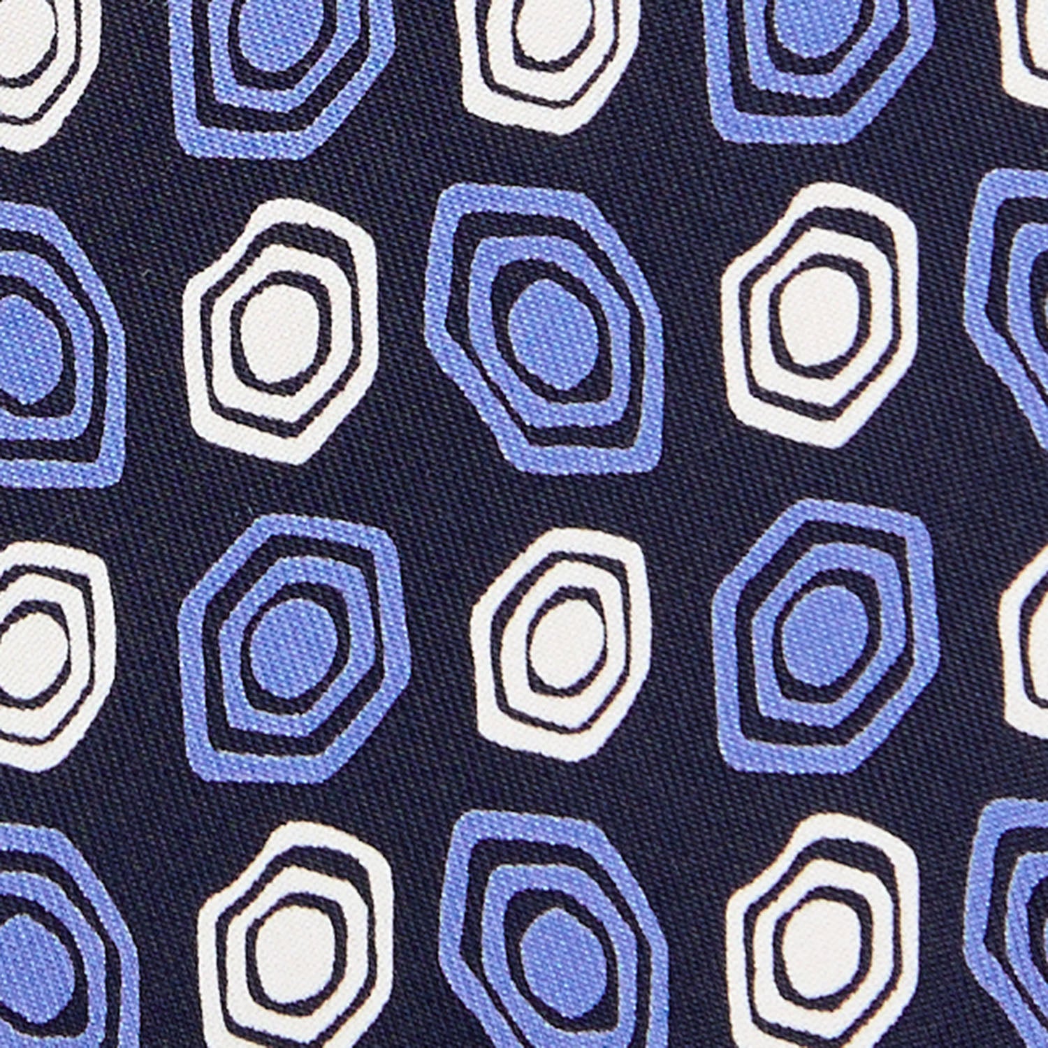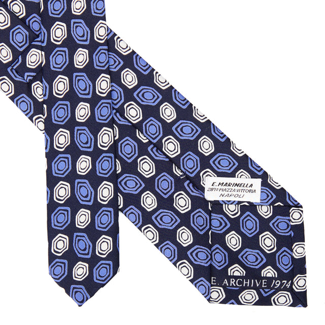 La cravatta fa parte della collezione Archivio, che propone in chiave moderna le stampe storiche dal 1930 al 1980. Gli anni '70 sono caratterizzati da motivi più vivaci e densi, a volte anche barocchi. I colori sono chiari con sprazzi di arancio, rosso brillante e bianco. Una cravatta dal carattere prepotente.