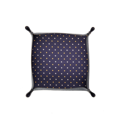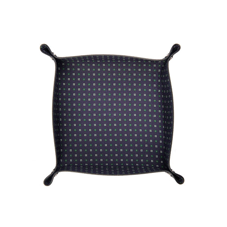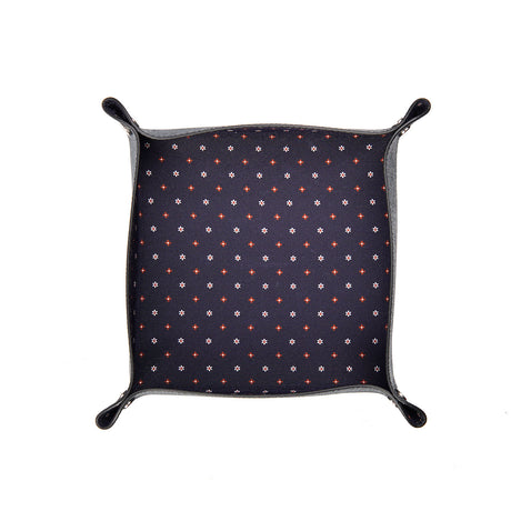 Gli svuotatasche di E. Marinella, realizzati artigianalmente e disponibili in diverse dimensioni, rappresentano un'aggiunta raffinata e funzionale al tuo quotidiano. In seta pelle, con le micro fantasie delle sete iconiche della Maison, sono caratterizzati dagli angoli fissati da quattro rivetti metallici. Un oggetto decorativo raffinato, che unisce stile e praticità.