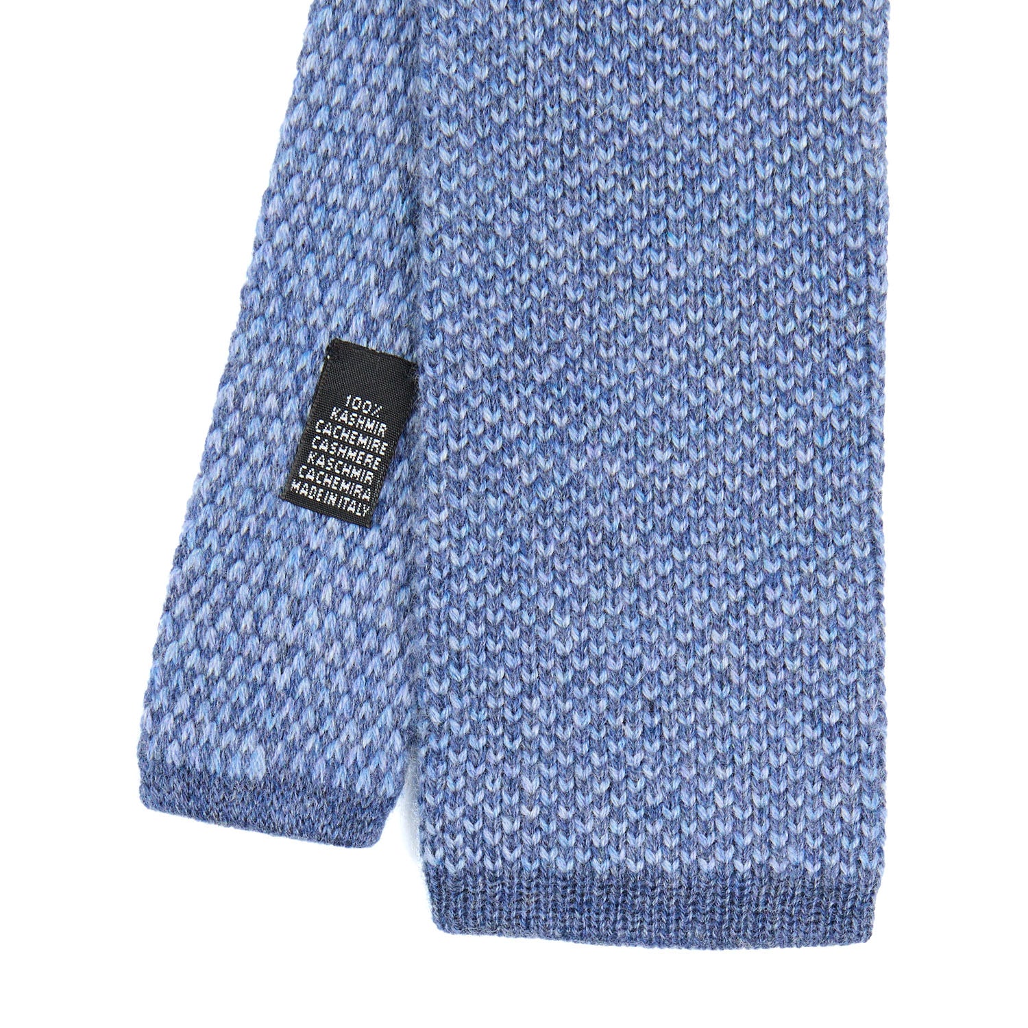 La cravatta in maglia di cashmere, detta anche "cravatta calzino" o ad "uncinetto", è caratterizzata dal taglio orizzontale senza punta. Adatta a look freschi e casual.