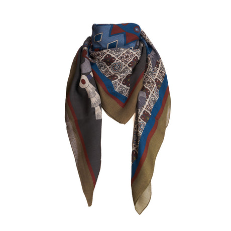 FOULARD BLUETTE E MARRONE SCURO IN LANA