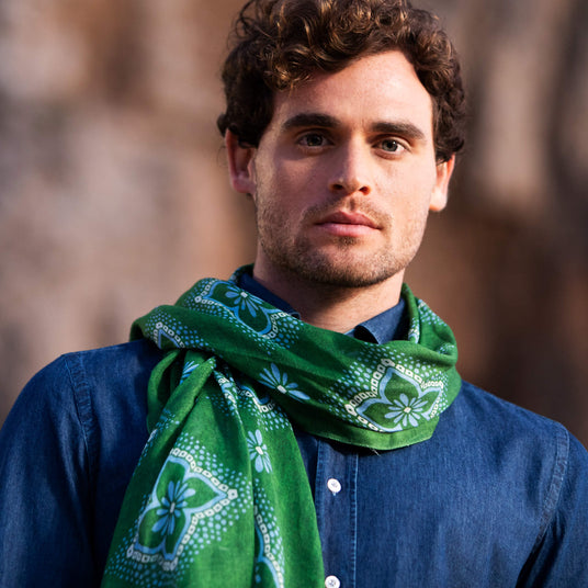 SCIARPA TUBOLARE IN VOILE DI COTONE E SETA VERDE