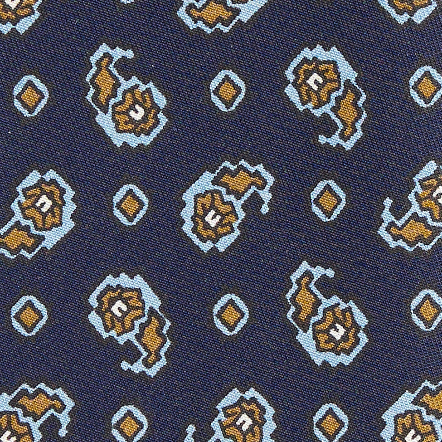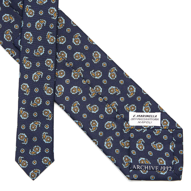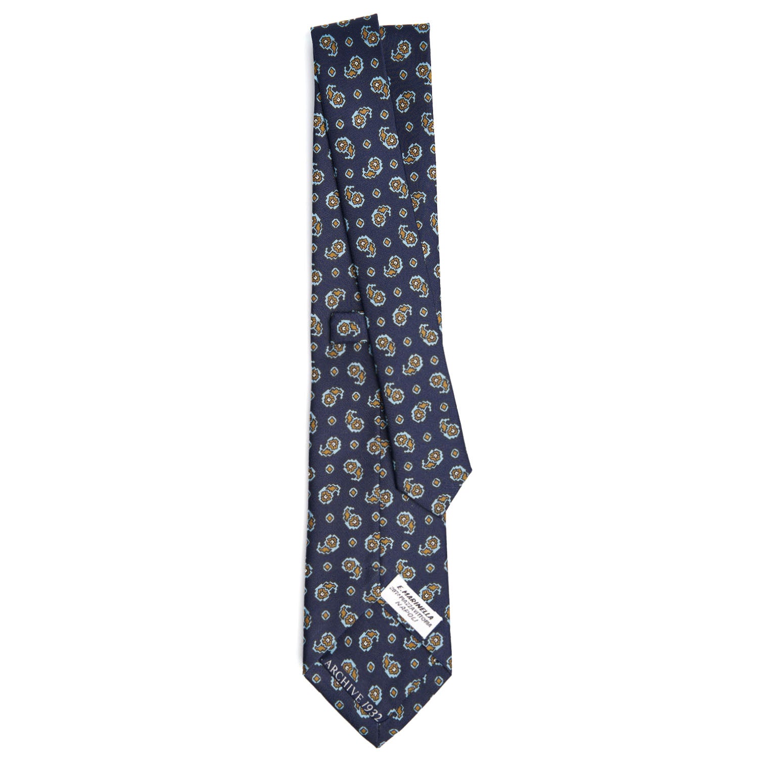 La cravatta fa parte della collezione Archivio, che propone, in chiave moderna, le stampe storiche dal 1930 al 1980 su tessuti di grammatura più leggera, come ad inizio secolo. Le fantasie degli anni '30 sono caratterizzate da disegni grandi, "caramelloni", e colori sobri. Una cravatta dal gusto retrò ma contemporanea nell'anima. Cravatta 3 pieghe