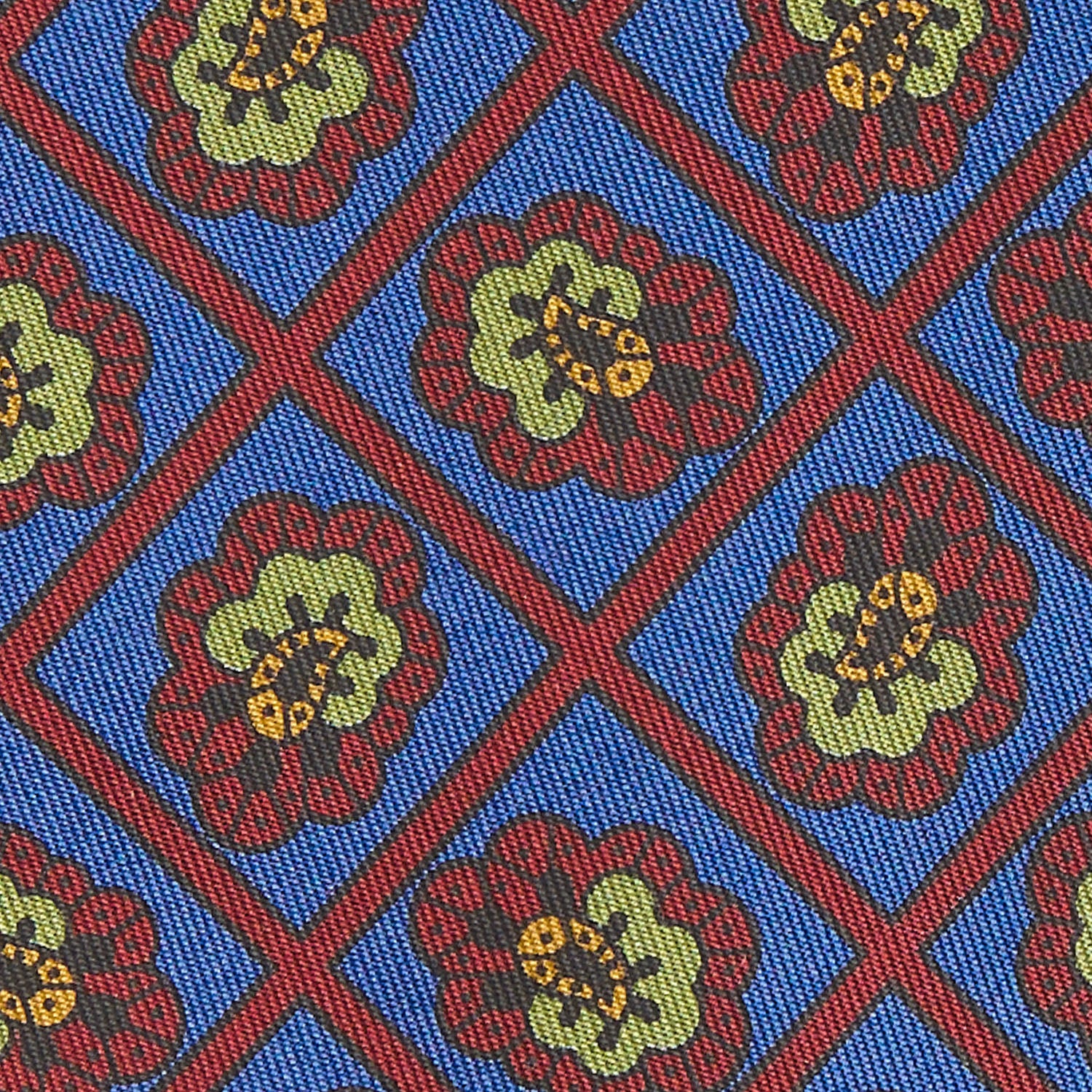La cravatta fa parte della collezione Archivio che propone, in chiave moderna, le stampe storiche dal 1930 al 1980 su tessuti di grammatura più leggera, come ad inizio secolo. Le fantasie degli anni '40 sono caratterizzate da colori sobri, con una predominanza di blue e bordeaux, talvolta illuminati dall'azzurro, e disegni importanti, risultato di una combinazione di piccoli disegni. Una cravatta che appare rigorosa.ma con un tocco comunque trendy.