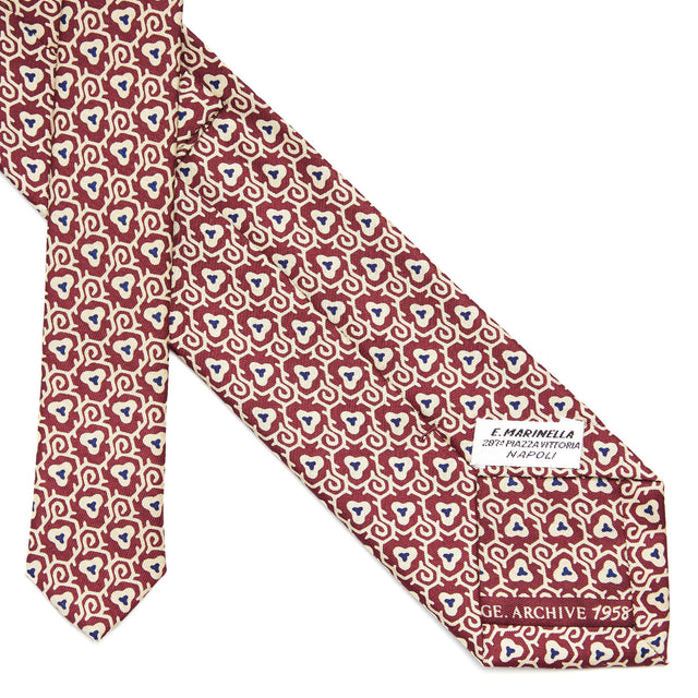 This tie is part of the Archivio collection which offers historical prints from the 1930s to the1980s in a modern way. The patterns of the 1950s are characterised by smaller, closer patterns. The "fiorellino" or little flower, a typical element of Marinella's designs, makes its entrance. There is also a return of paisley sometimes combined with small flowers, often tone on tone. A classic tie with touches of originality.