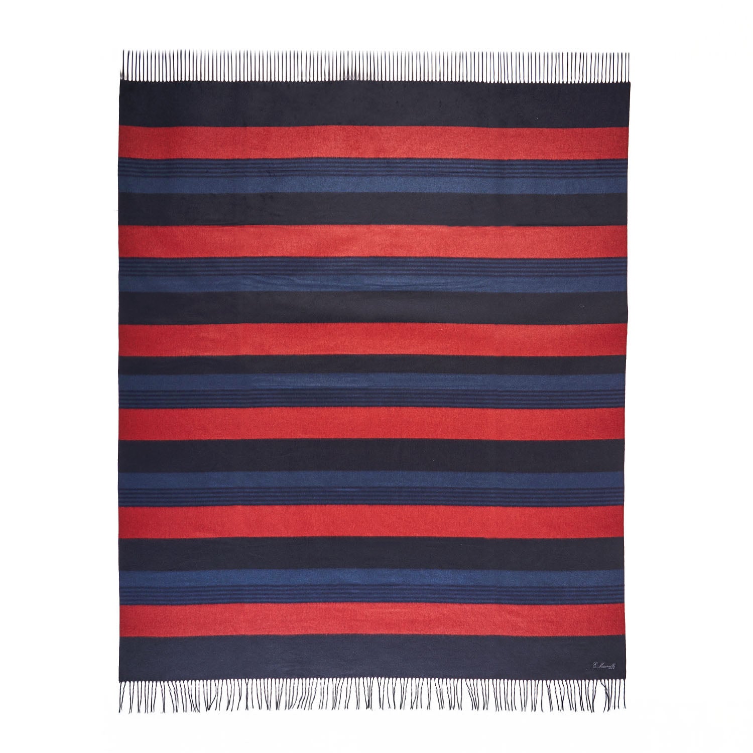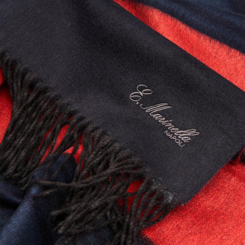 Plaid in seta e cashmere dai colori intensi e profondi. Con frangia finale e logo E.Marinella ricamato, è una coperta d'arredo perfetta per i momenti di relax. Made in Italy