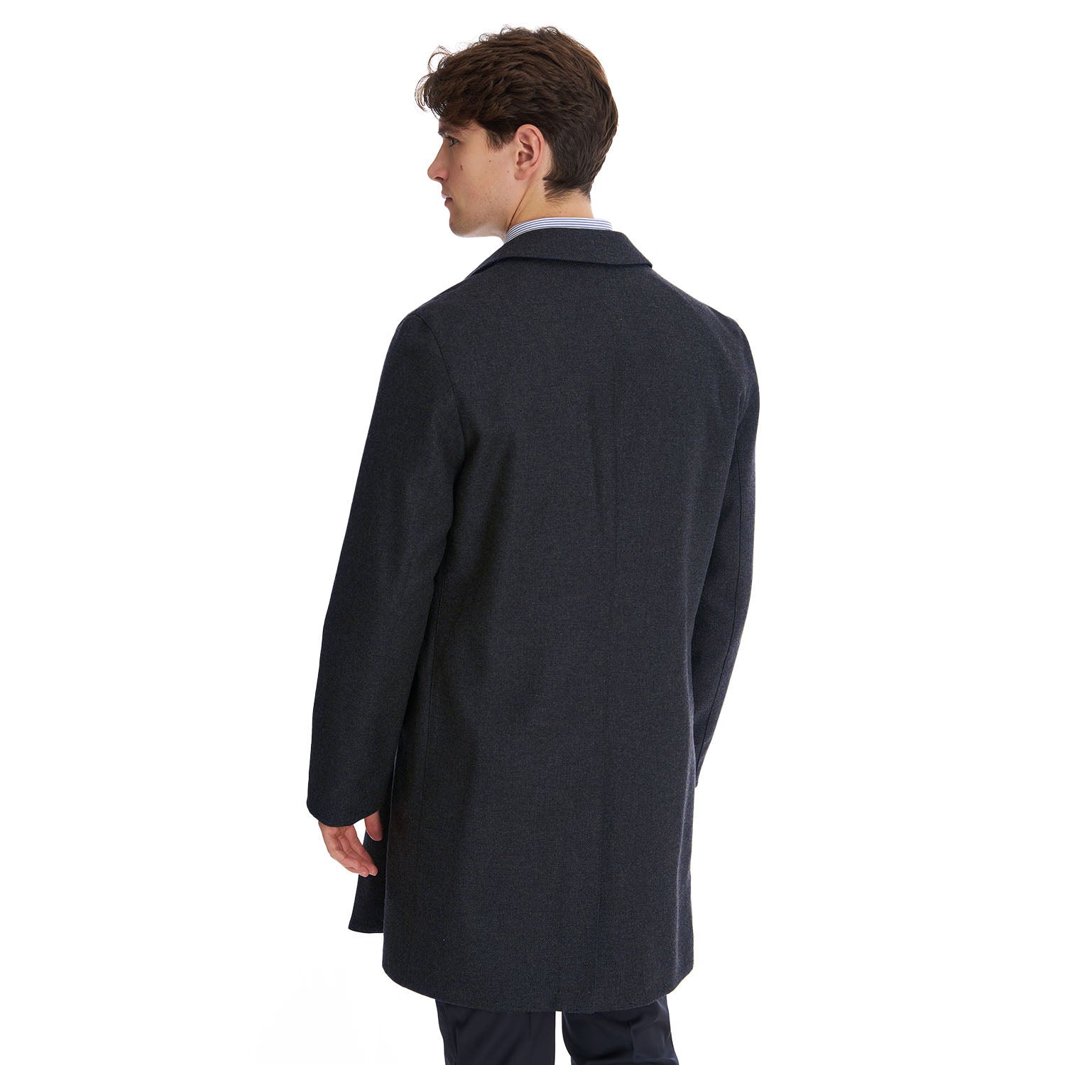 Cappotto impermeabile e reversibile in lana vergine e cashmere. Sotto collo con dettaglio in alcantara.