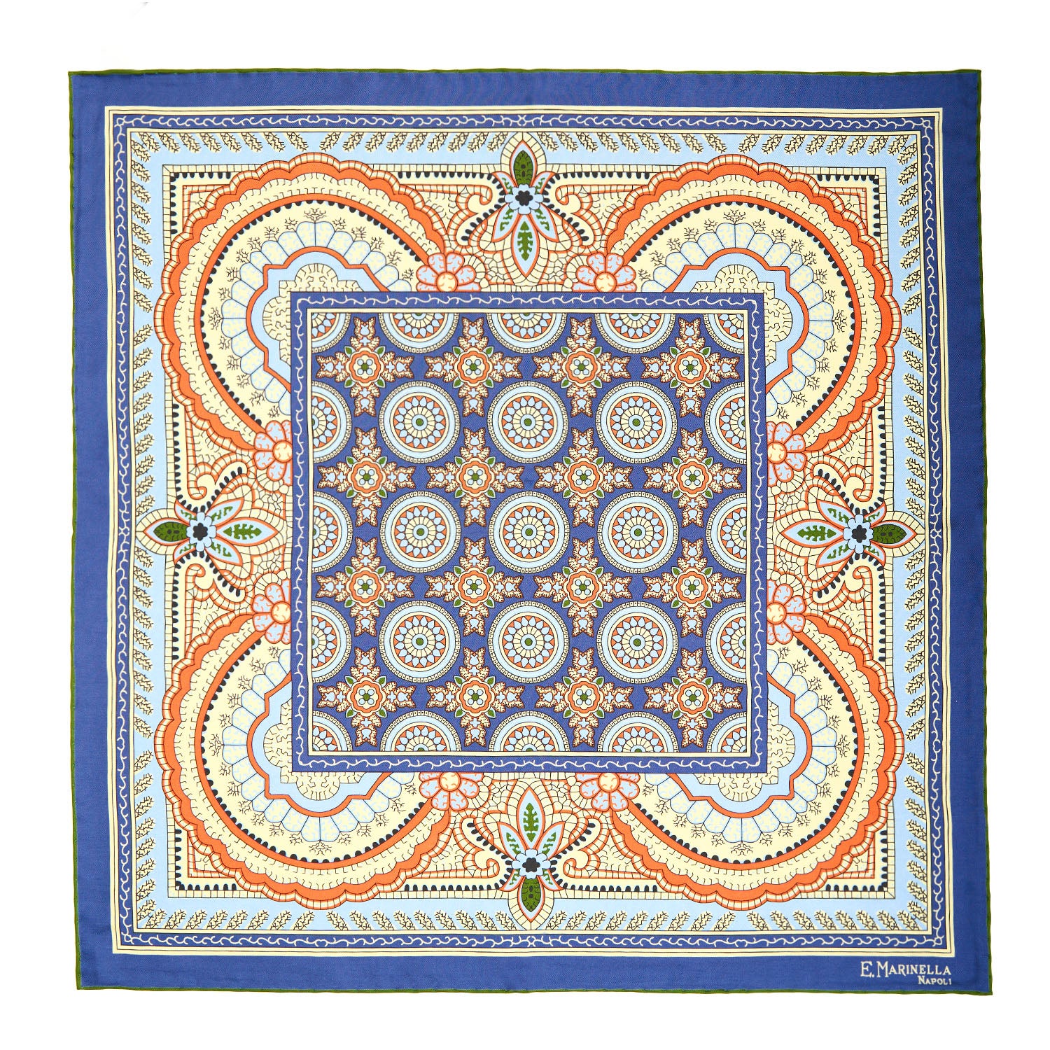 POCHETTE DA TASCHINO IN SETA STAMPATA A MANO BLU