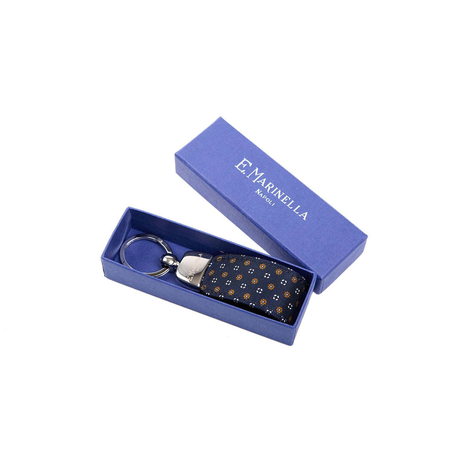 Ogni articolo E. Marinella è presentato in un’elegante confezione regalo con la sua iconica scatola rigida e busta in carta logata.