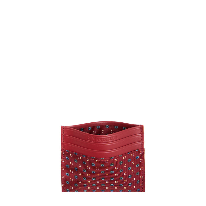 PORTACARTE DI CREDITO SETA E PELLE BORDEAUX
