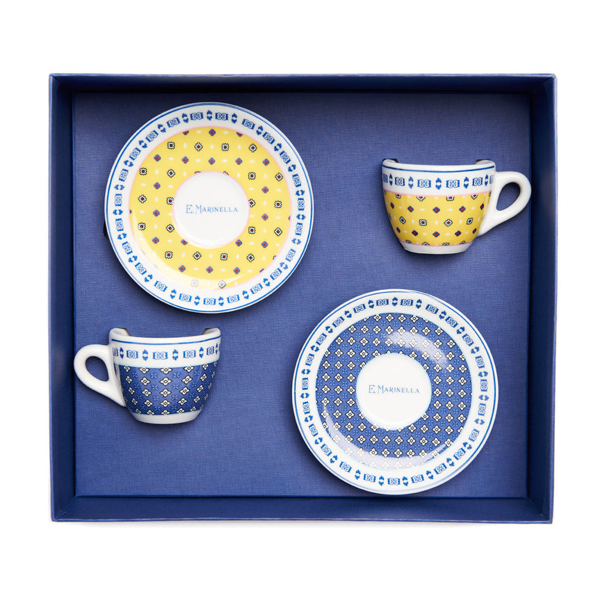 SET DI DUE TAZZINE DA CAFFÈ AZZURRO POLVERE E GIALLO