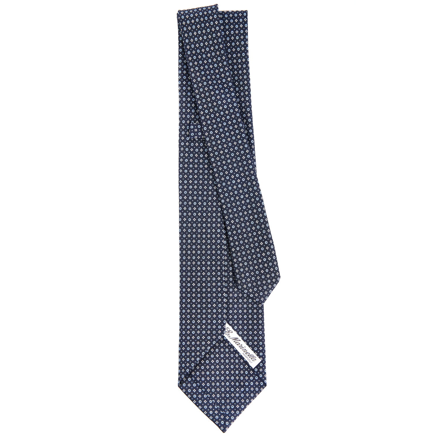 La cravatta 7 pieghe E. Marinella è un prodotto totalmente artigianale, dalla stampa a mano della seta al taglio singolo del tessuto, alla chiusura del prodotto finito. Si tratta di una cravatta molto preziosa perché la quantità di seta impiegata è maggiore: lo square di seta viene piegato sette volte su se stesso donando alla cravatta una maggiore consistenza, anche all'altezza del nodo, e pesantezza.