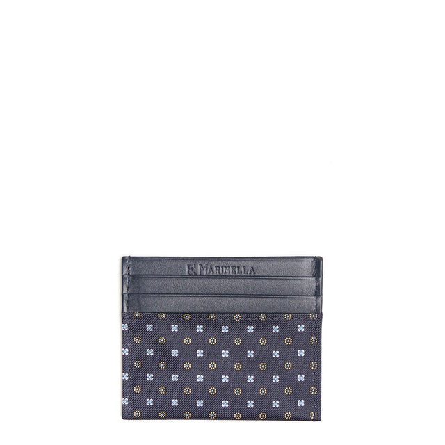 PORTACARTE DI CREDITO SETA E PELLE BLU SCURO