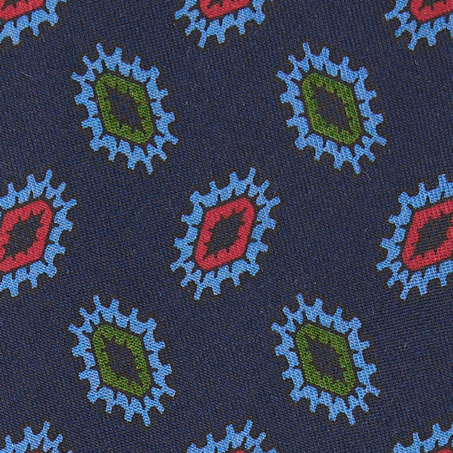 La cravatta fa parte della collezione Archivio, che propone in chiave moderna le stampe storiche dal 1930 al 1980. Le fantasie degli anni '50 sono caratterizzate da fantasie più piccole e fitte. Fa il suo ingresso il "fiorellino", elemento tipico delle fantasie Marinella. Un ritorno anche del paisley nella versione più tradizionale talvolta accostato apiccoli fiorellini, spesso tono su tono. Una cravatta classica con tocchi di originalità.
