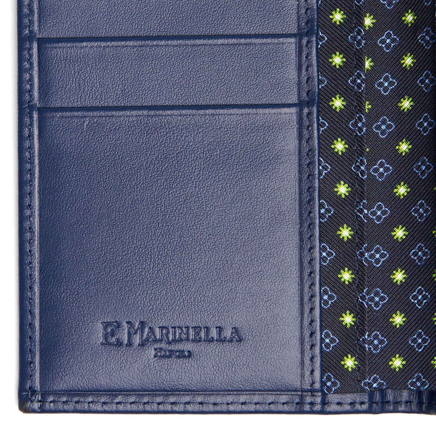 Portafoglio in pelle e seta microfantasia con classico disegno E. Marinella.